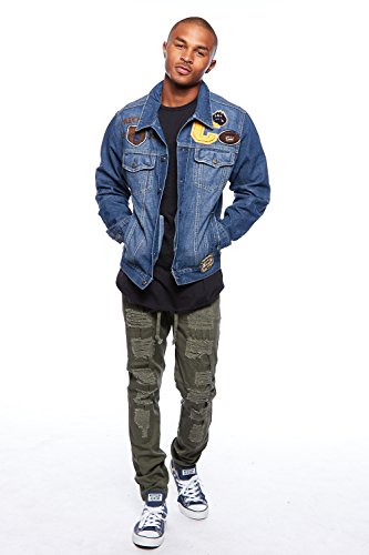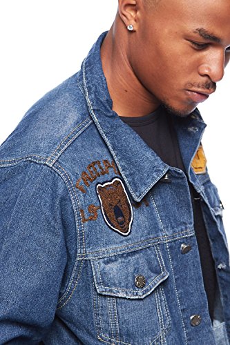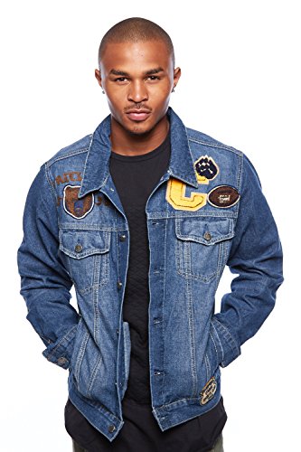 (GENx)/Men/Outerwear/DIRECT FROM USA/Mens Patched Casual Collared Fashion Denim Jacket DJ08