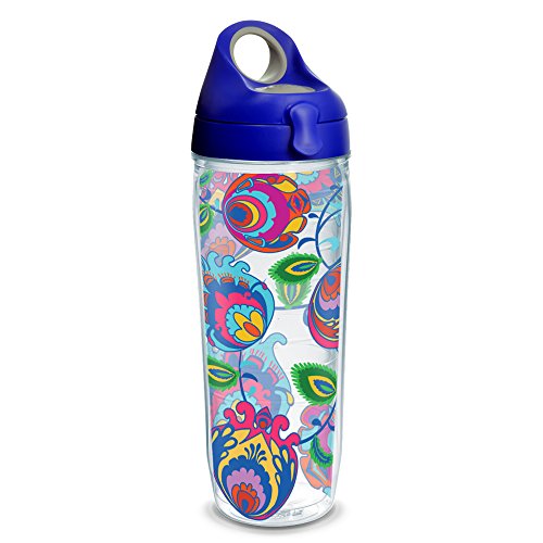Tervis Folksy Flower Wrap Water Bottle with Royal Blue Wb Lid, 24oz, Clear