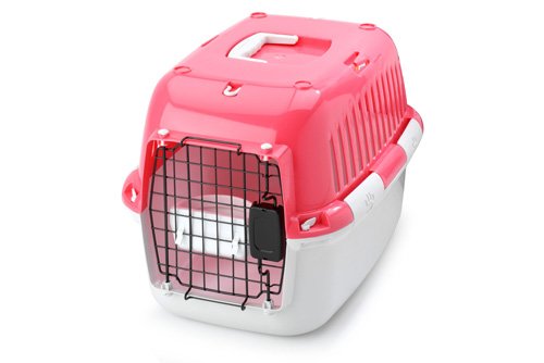 -. Feature : Comfortable and easy to clean / Made of plastic / Stable with front door, carry handle and water bowl