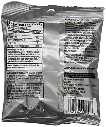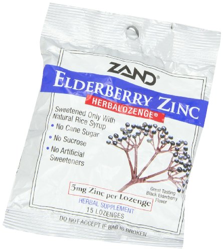 Sweetened only with natural rice syrup, no cane sugar, no sucrose, no artificial sweeteners, great tasting black elderberry flavor, 5 mg zinc per lozenge, 15 lozenges. ZandHerbal lozenges have been specially sweetened with natural brown rice syrup, making these lozenges free from simple or refined sugars, including sucrose or cane sugar. Current research links the use of simple and refined sugars to a variety of growing health conditions, and many consumers must avoid these sugars whenever possible. Brown rice syrup is all-natural, tastes wonderfully sweet, and allows health conscious consumers to utilize Zand's herbal lozenges throughout the seasons without concern over restricted diets, refined sugars, or the use of artificial sweeteners.Feature