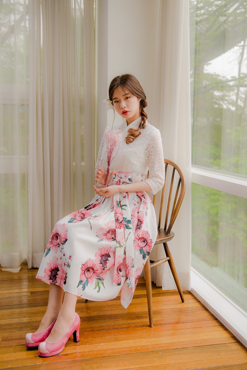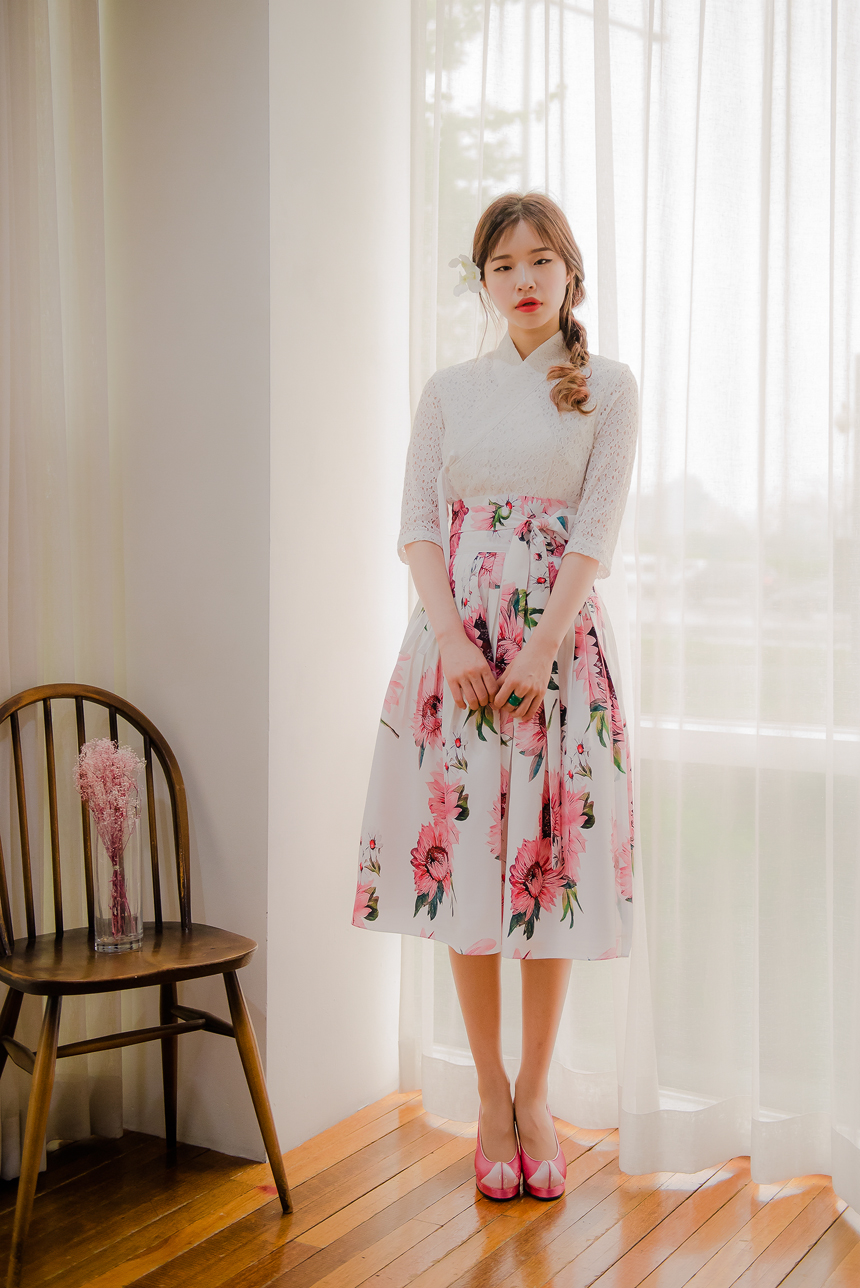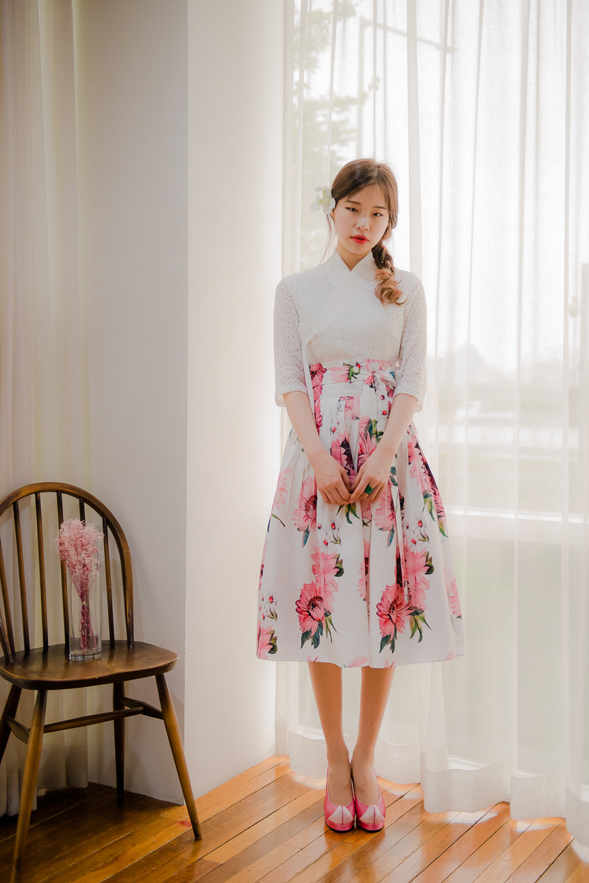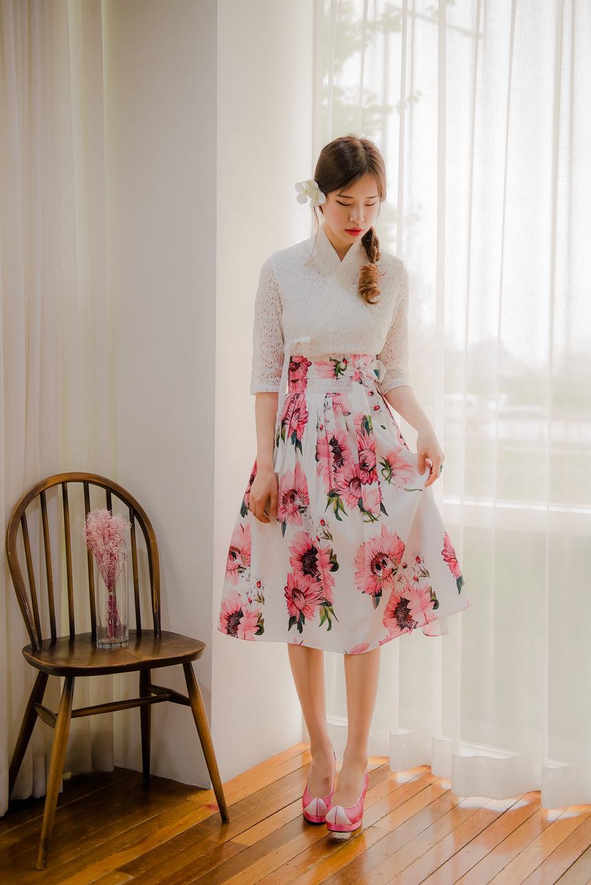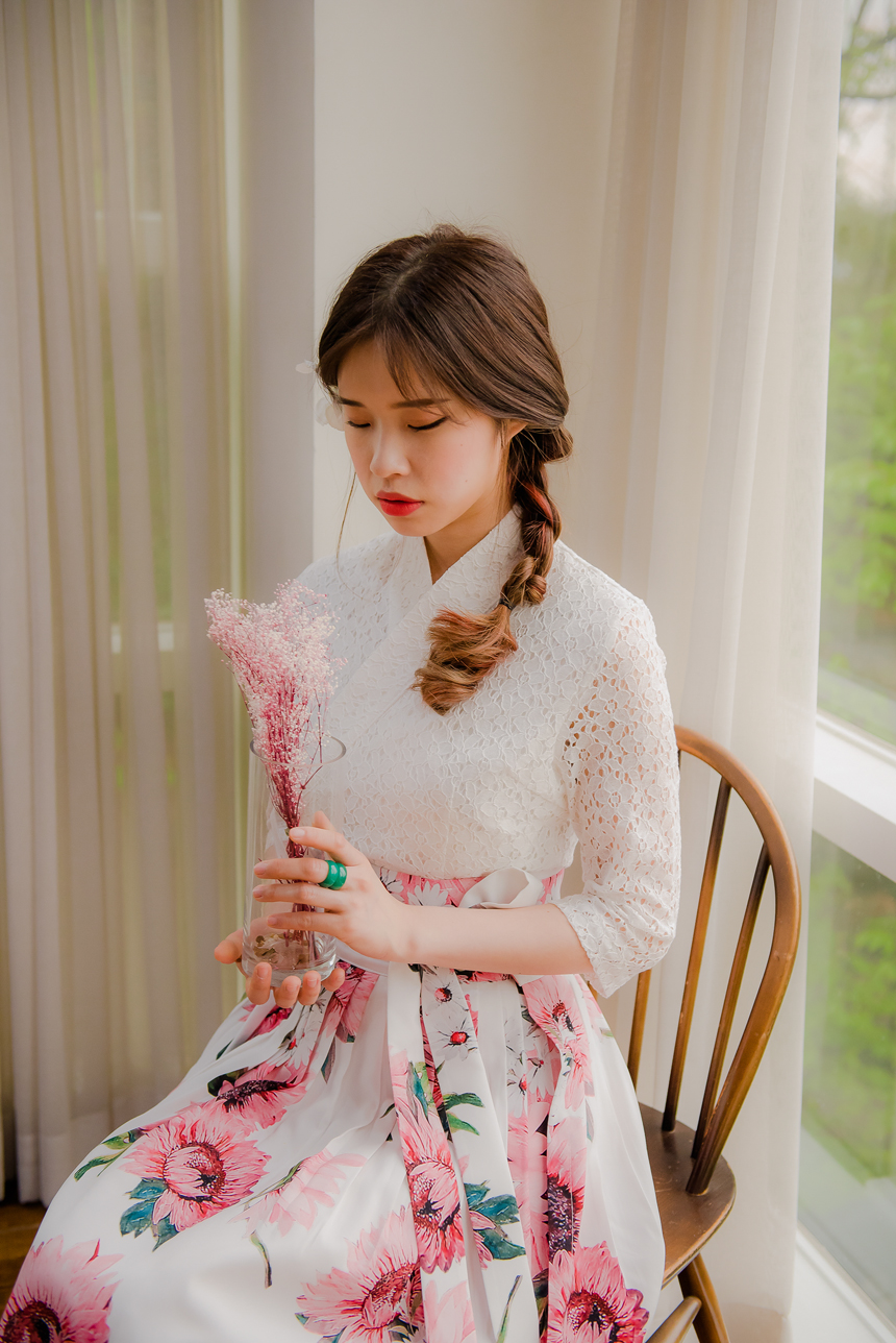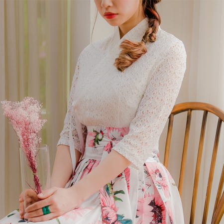 사랑스럽고 여성스러운 니팅레이스 원단의 장점과 한복이 가진 디테일을 살리면서