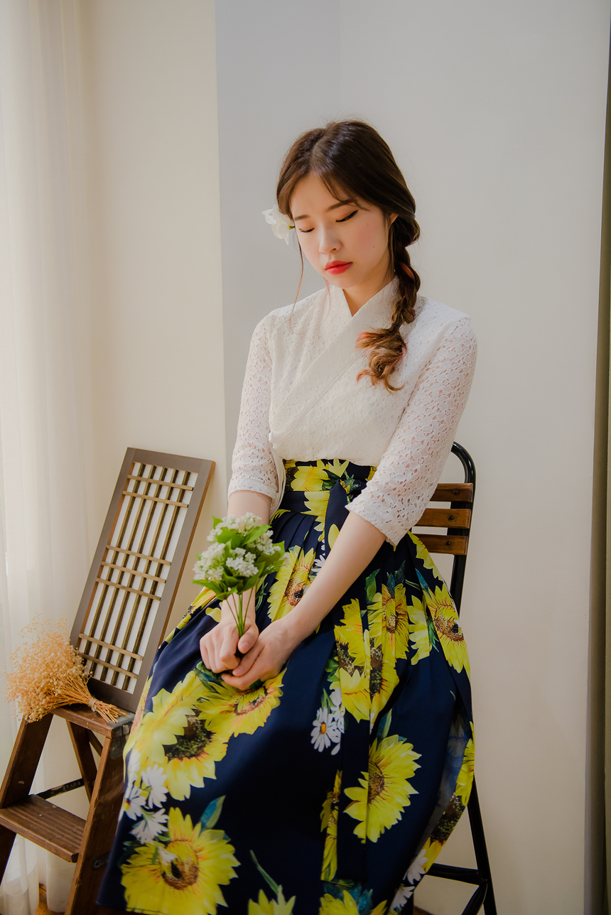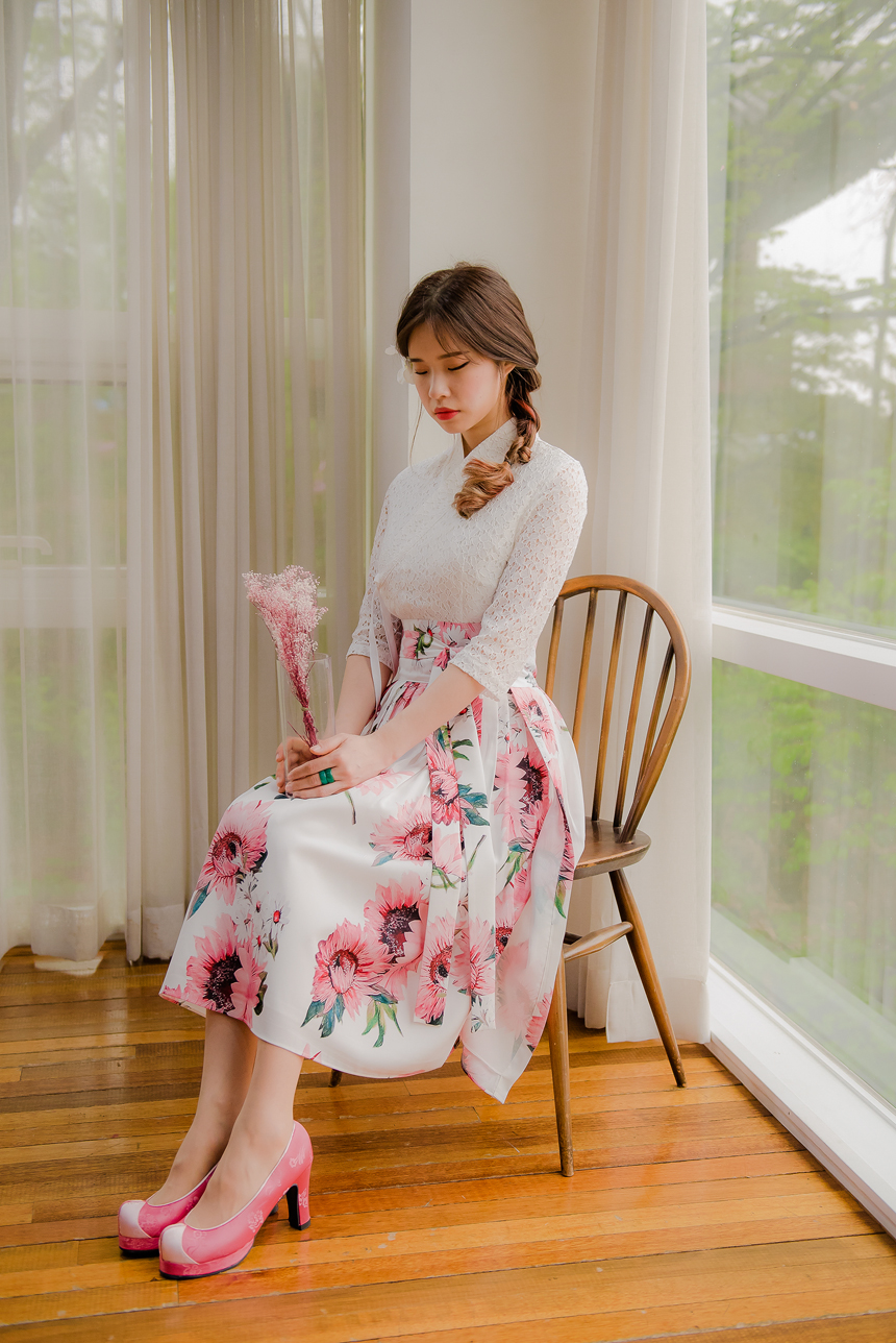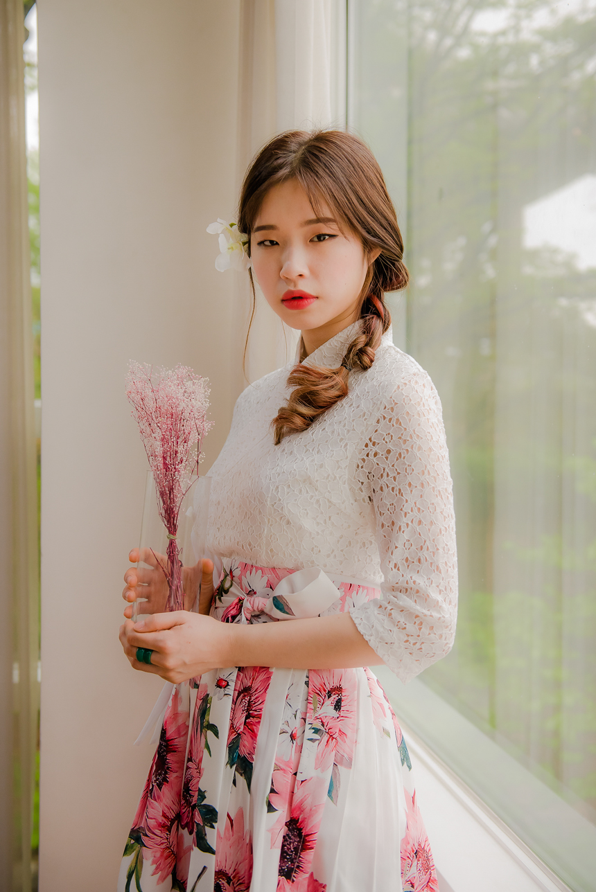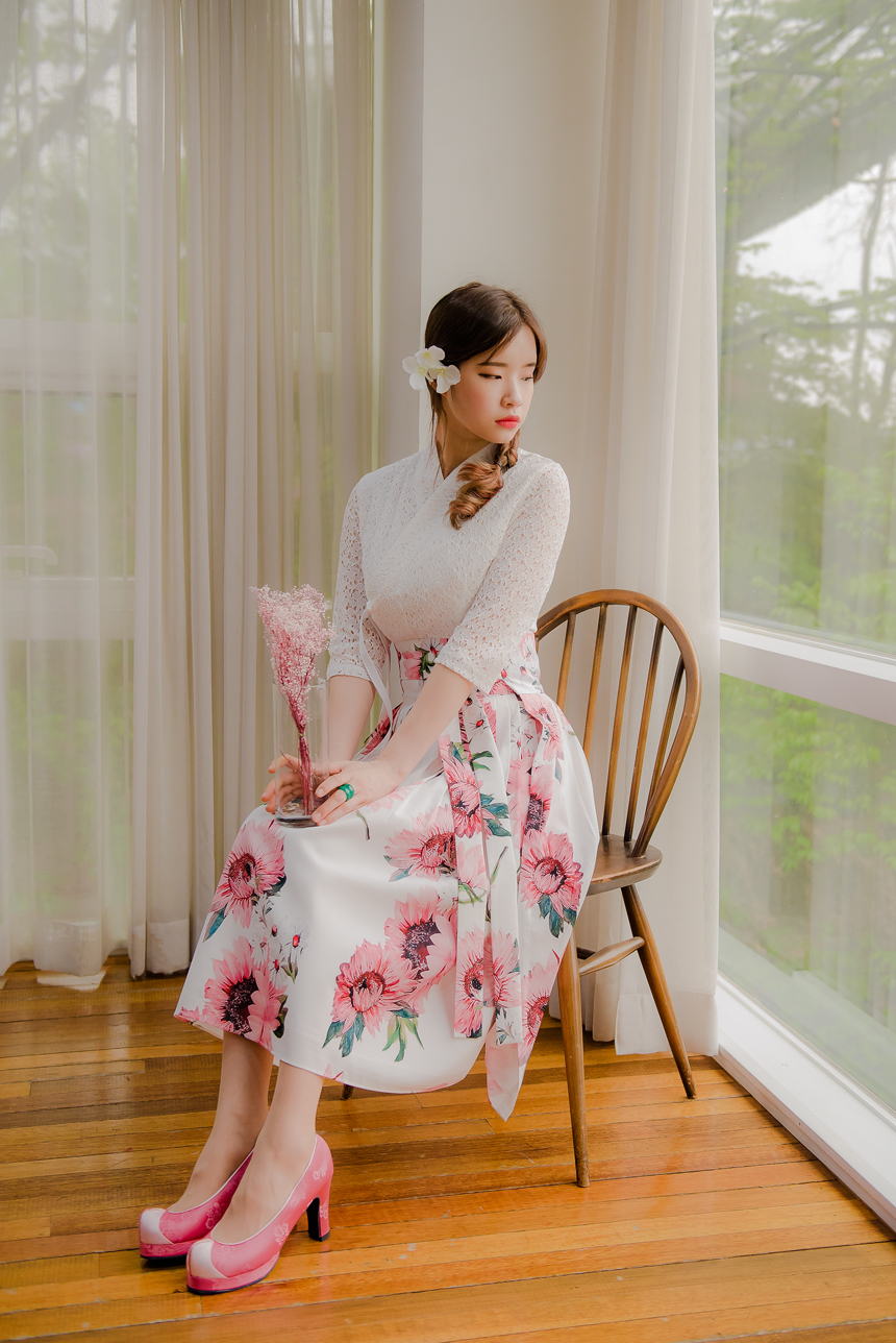 사랑스럽고 여성스러운 니팅레이스 원단의 장점과 한복이 가진 디테일을 살리면서
