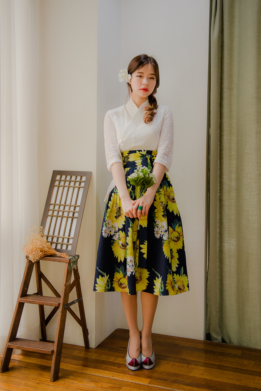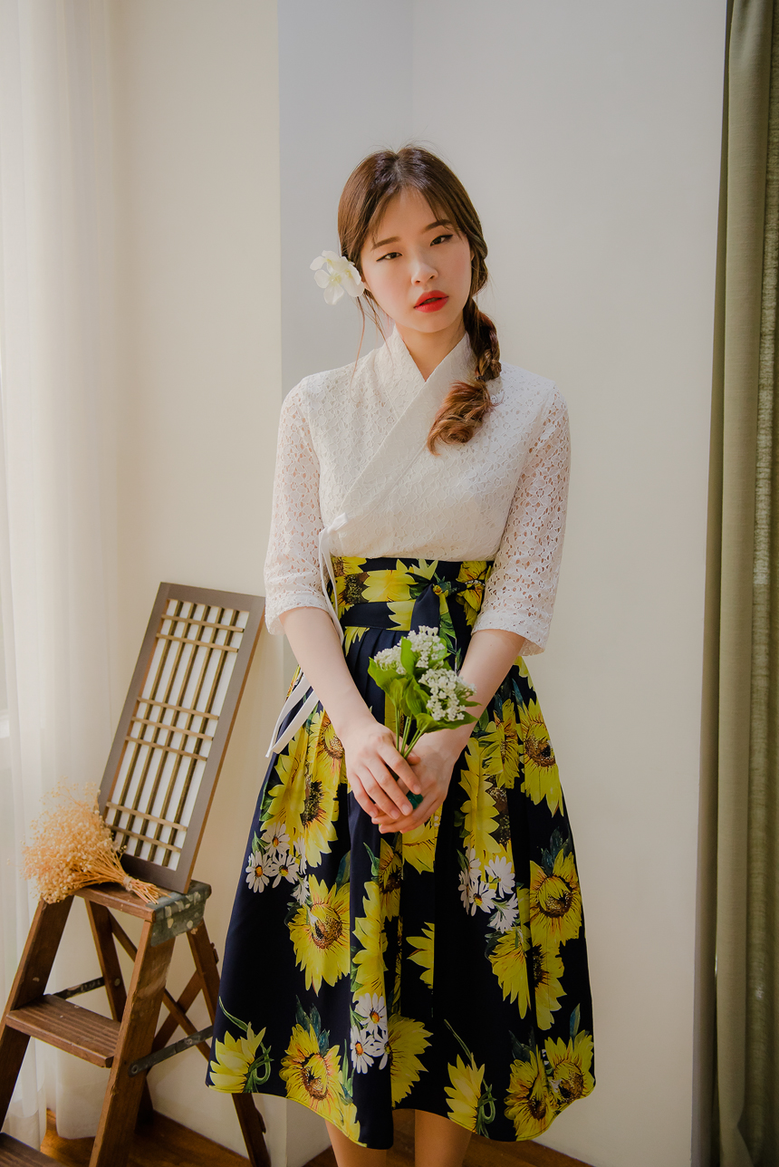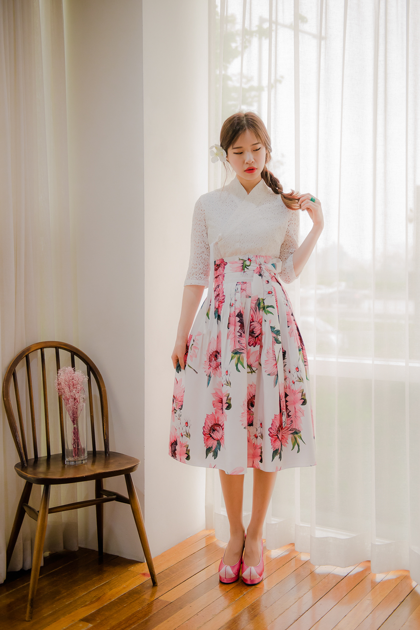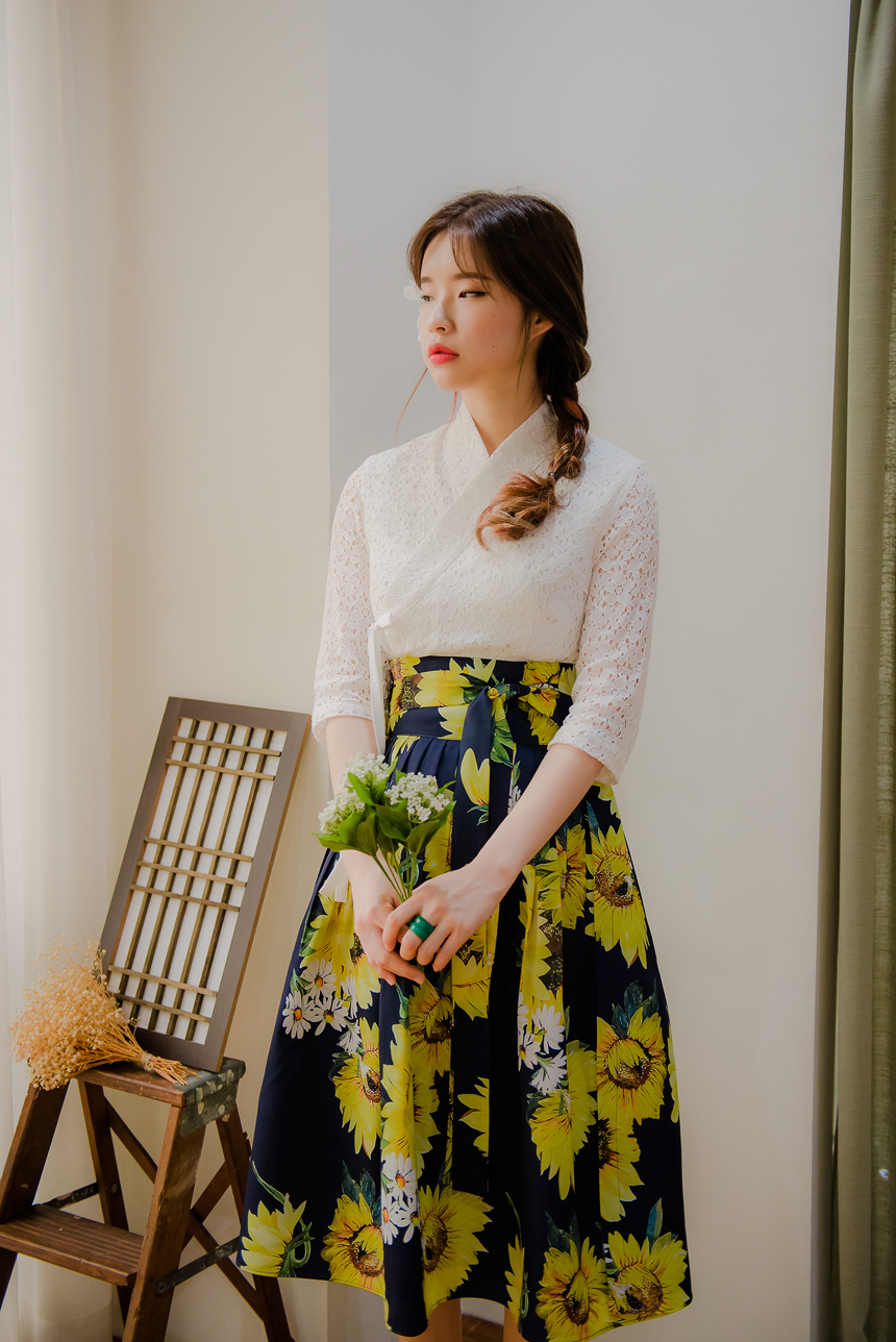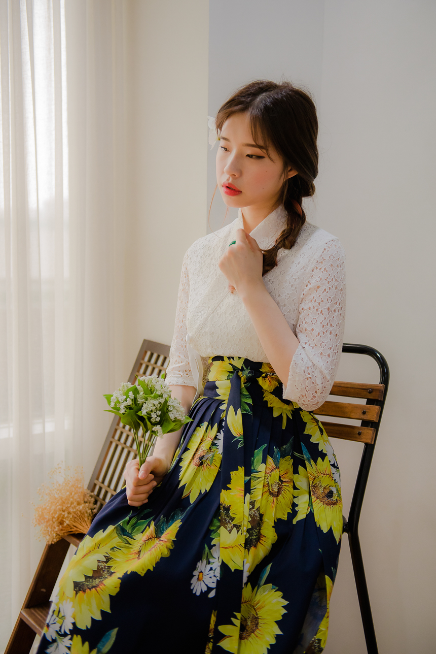 사랑스럽고 여성스러운 니팅레이스 원단의 장점과 한복이 가진 디테일을 살리면서