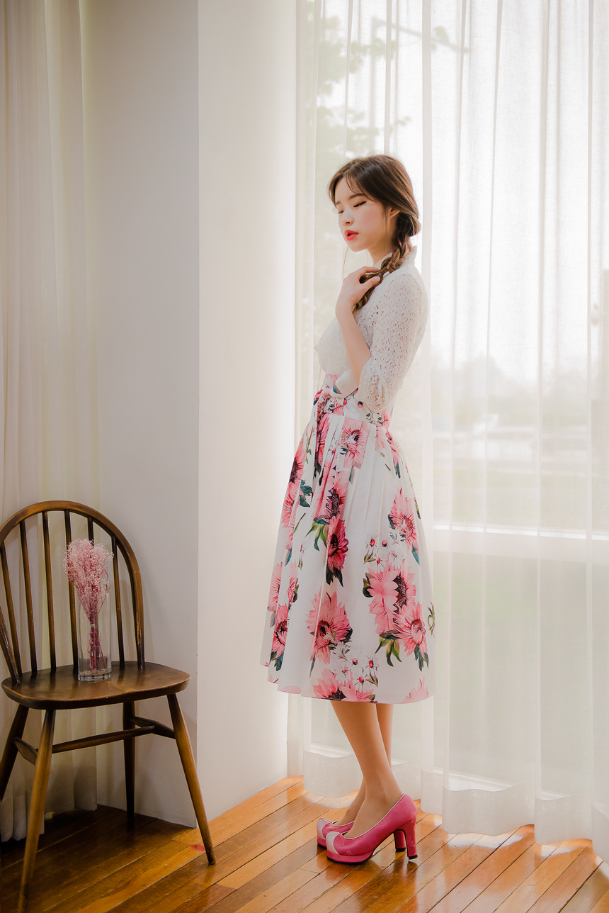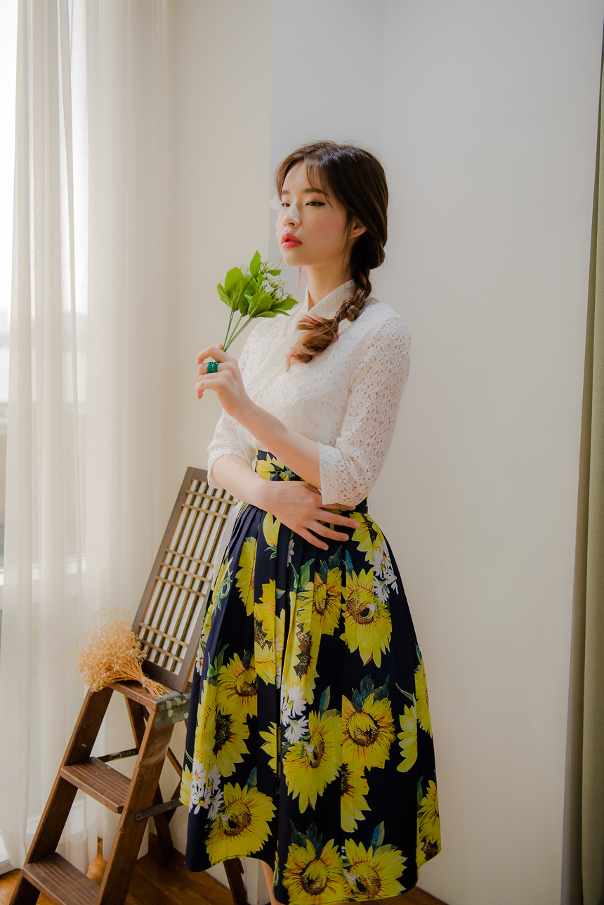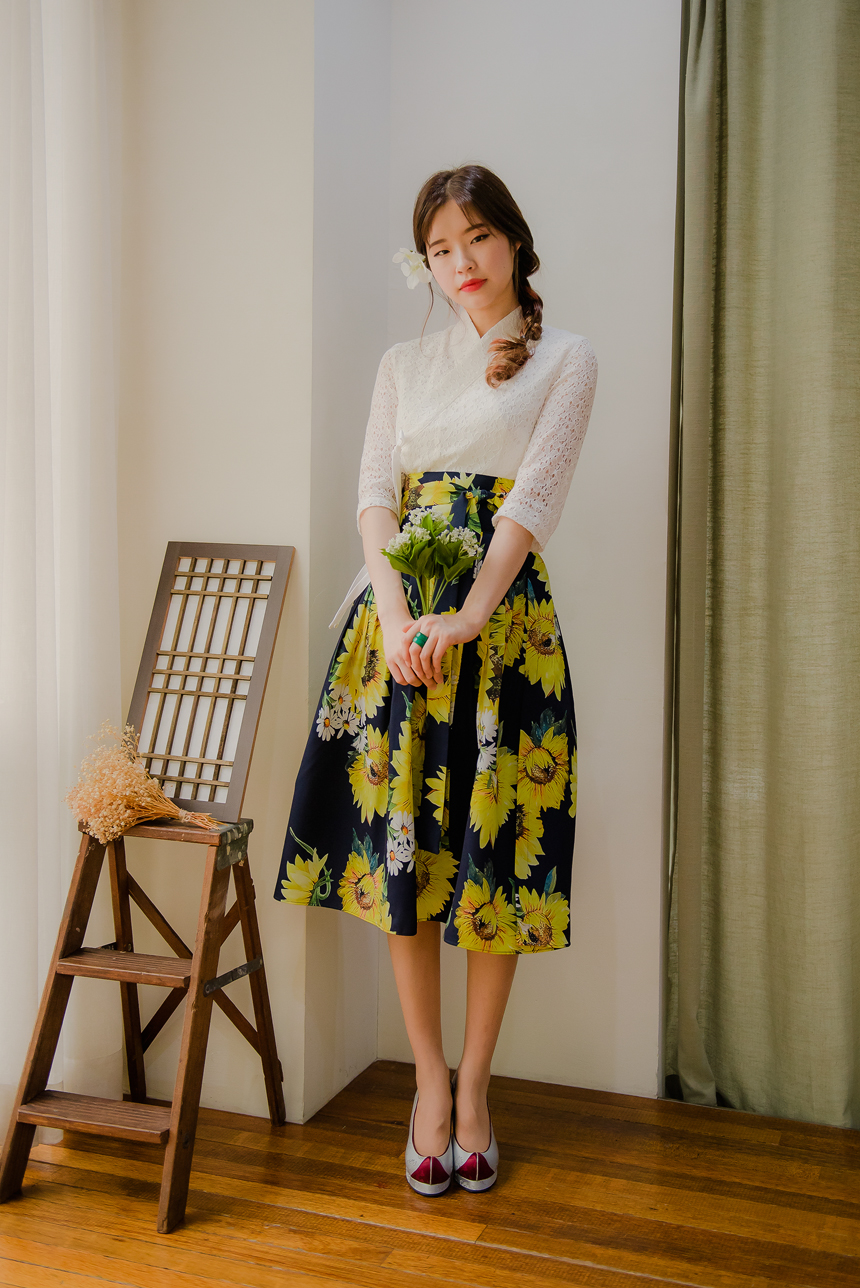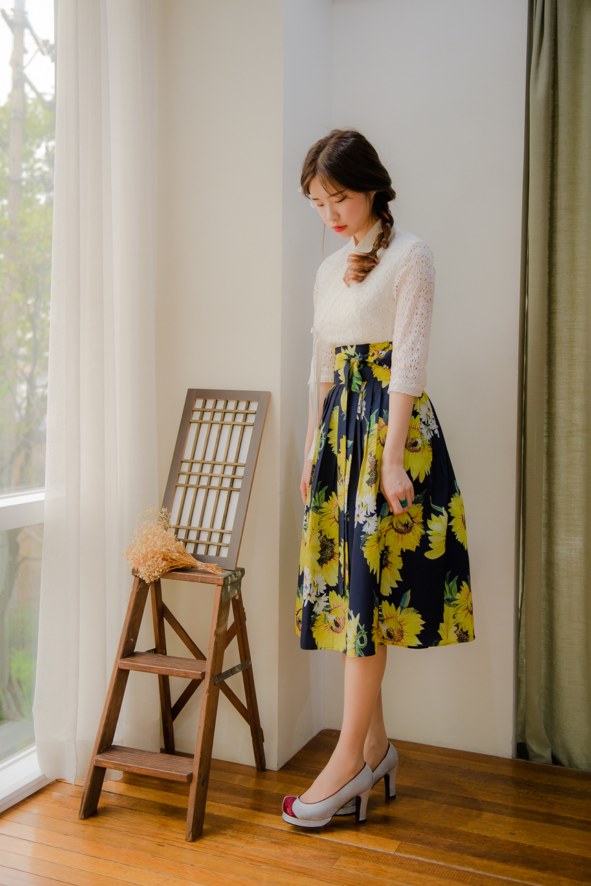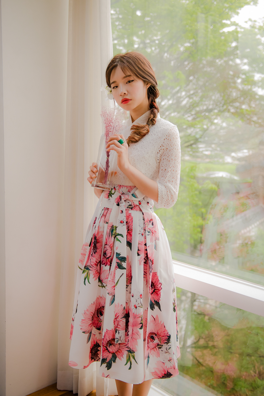 사랑스럽고 여성스러운 니팅레이스 원단의 장점과 한복이 가진 디테일을 살리면서