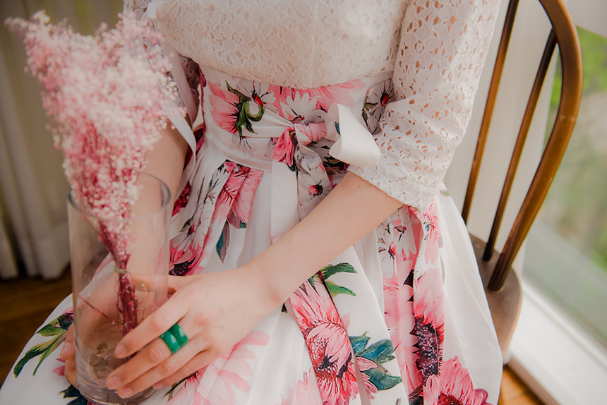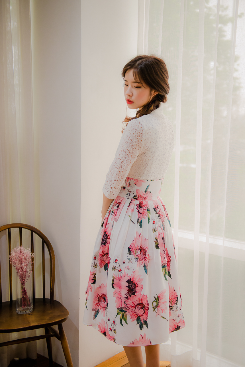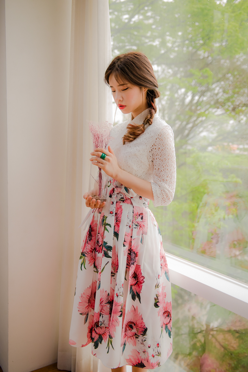 고급 니팅레이스 원단으로 꽃 한송이, 한송이 입체감이 살아있는 디테일 확인해주세요.