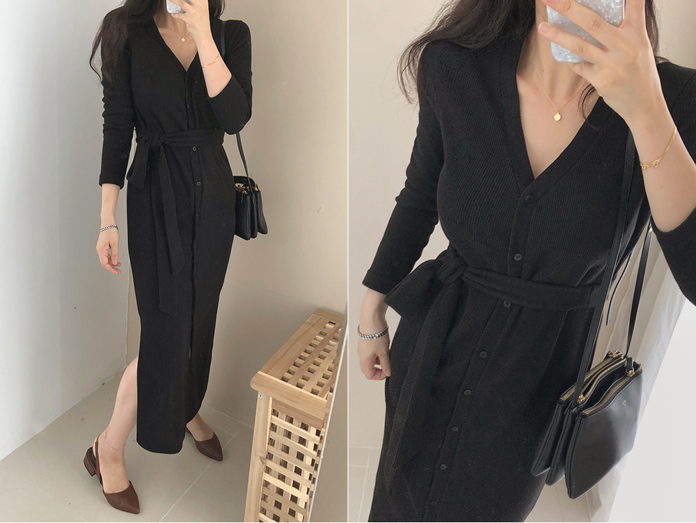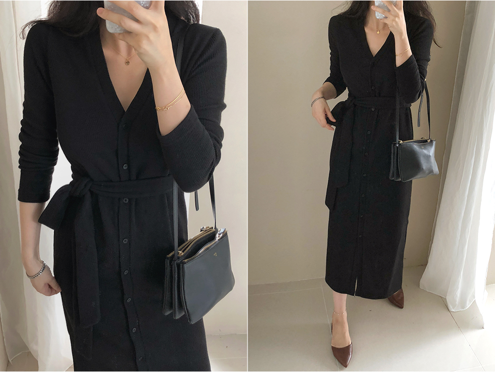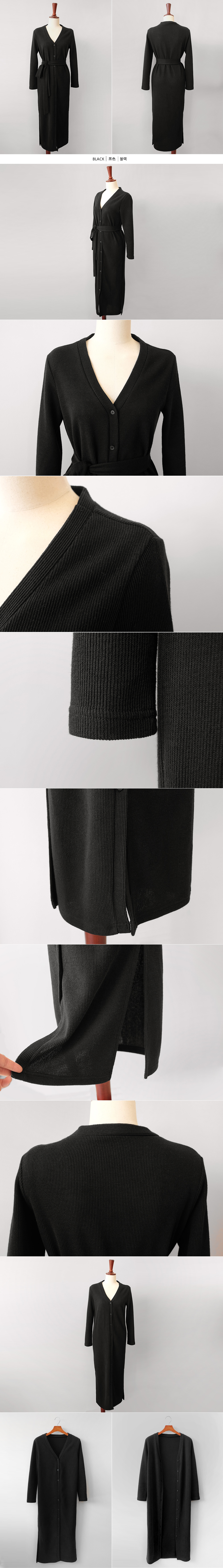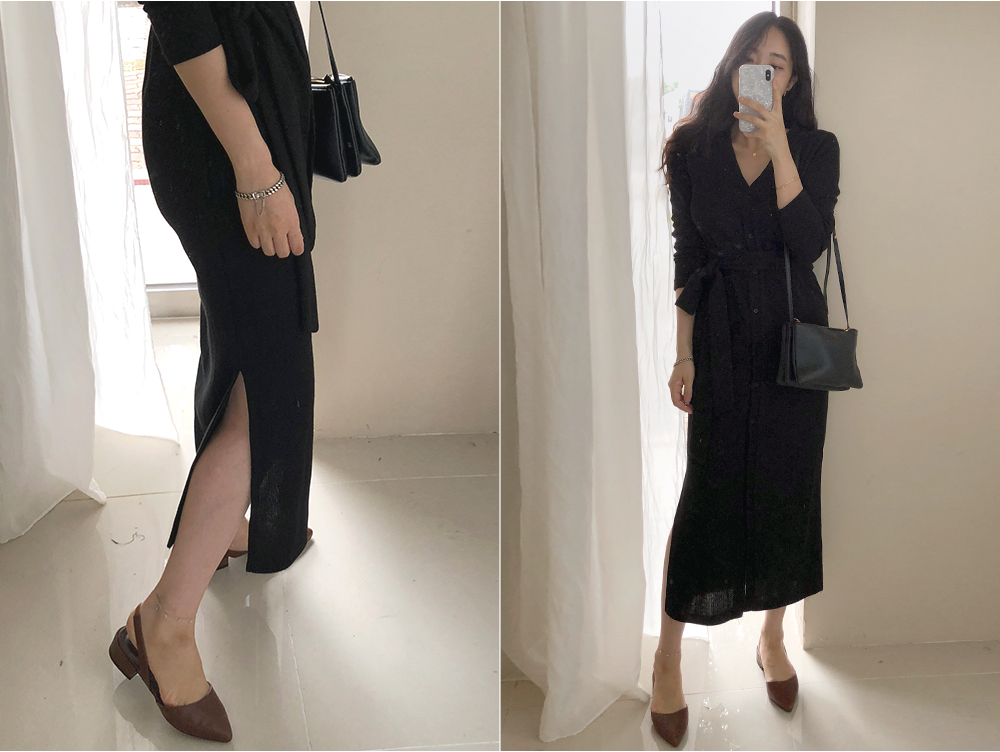 니트 스트랩 가디건 단추 롱 원피스