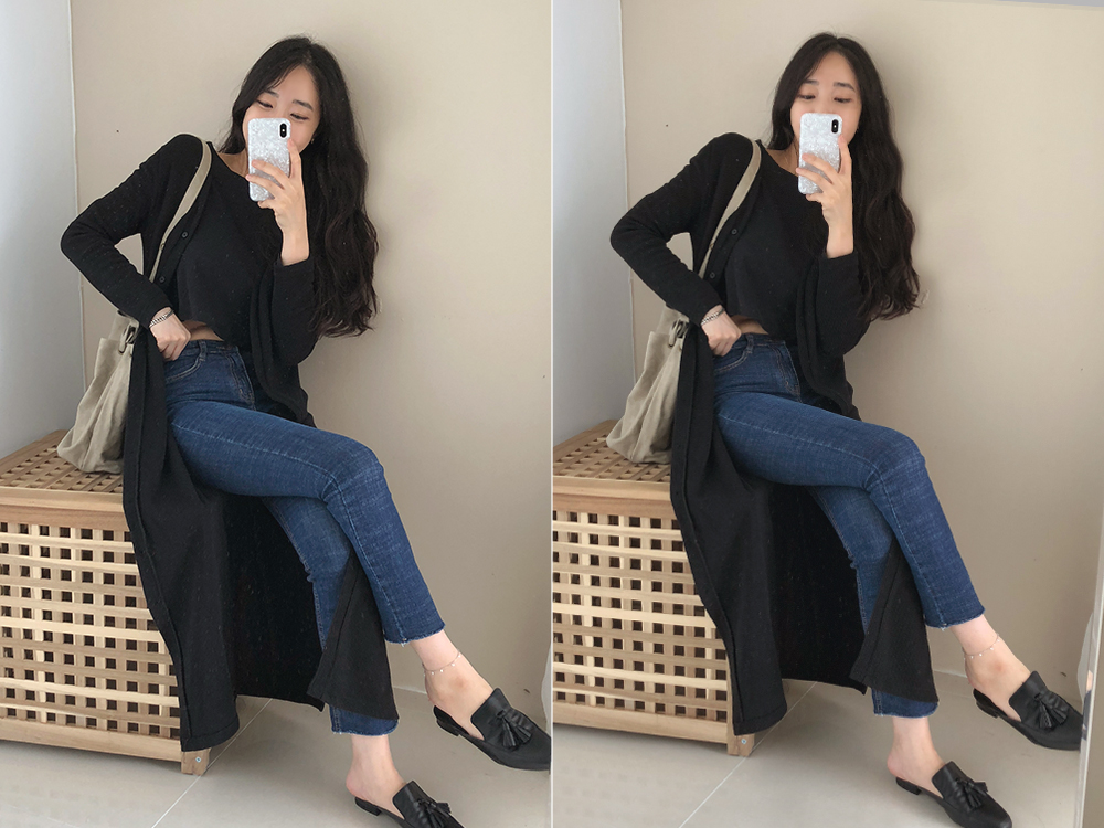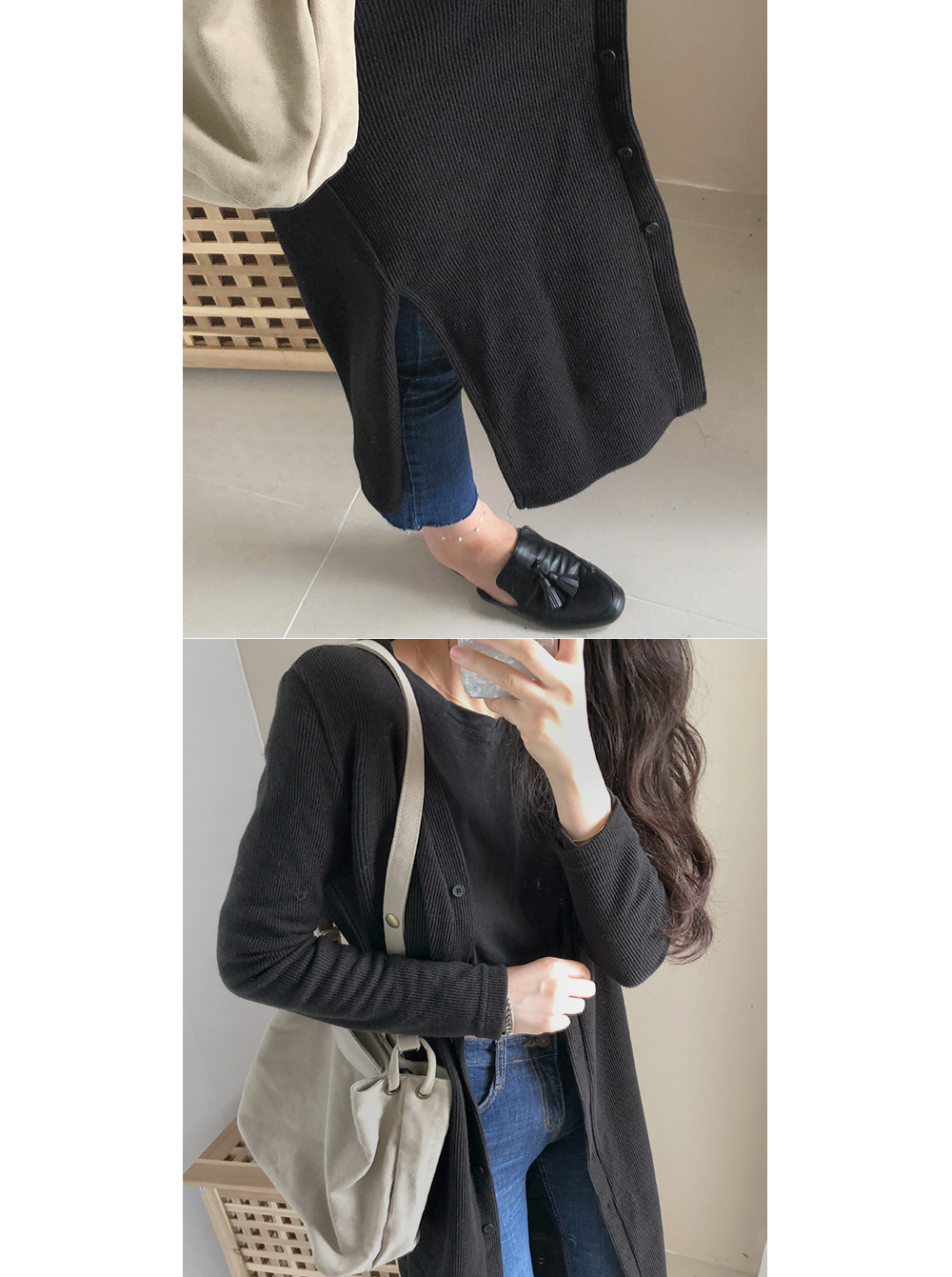 버튼을 오픈해서 착용시 롱 가디건으로 착용할 수도 있고