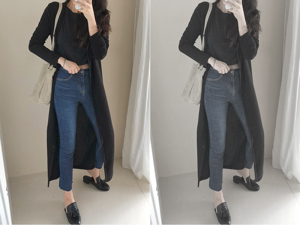 롱한 기장감과 살짝 타이트한 핏감으로