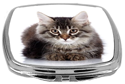 Rikki Knight Fluffy Beautiful Grey Cat with Hazel Brown Eyes Design Compact Mirror, 17 Ounce