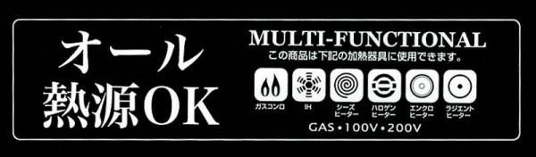 | 仕様 | 鍋の深さ:7.8cm オール熱源(ガス、IH100V・200V、シーズヒーター、ハロゲンヒーター、エンクロヒーター、ラジエントヒーター)対応 食洗機・乾燥機不可 |