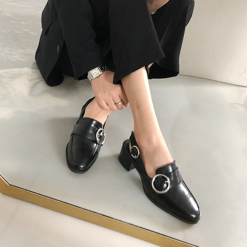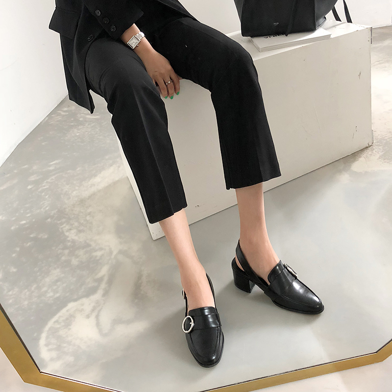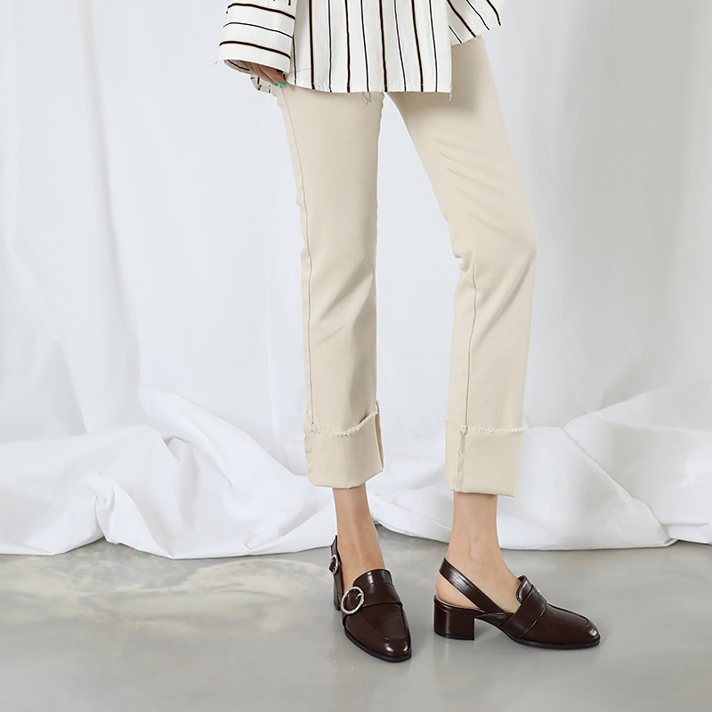 Sling-back strap loafer. 형태감있는 실루엣이 보여지는 로퍼입니다. 슬링백이 더해진 디자인으로 안정감있는 착화감이 느껴지며 특히 발등의 실버오브제와 스트랩에 걸려있는 실버디테일이 조화를 이루면서도 간결한 디자인에 포인트를 주었습니다.