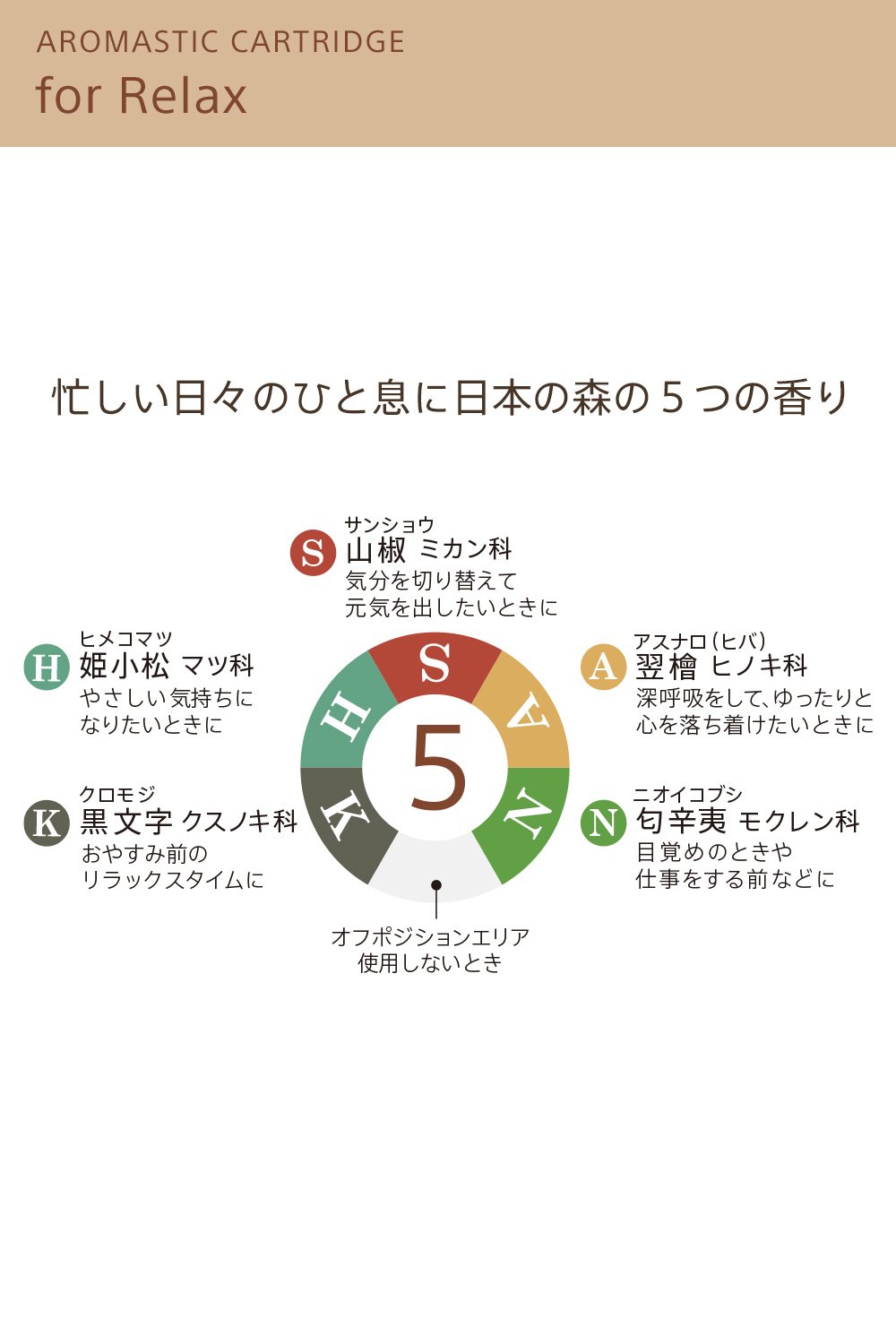AROMASTIC body has set "AROMASTIC Cartridge for Relax" packed with 5 fragrances of Japanese forest perfect for busy days of relaxation.
