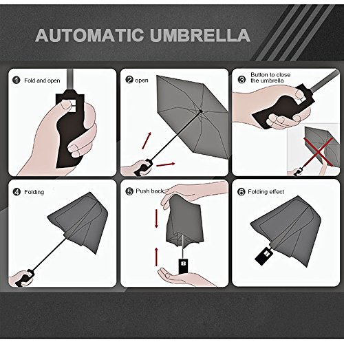 -. Feature : Automatic umbrella: This sunny umbrella withthe new design can easily achieve open or close, when you play outside or shopping, you only need to take out this umbrella from the bag, gently press, you can block the sun, to protect your skin / Light & perfect sunscreen effect: This umbrella has designed for women, The black layer can block ultraviolet rays directly, when you go out shopping or play, bring it will not feel a lot of weight, easy to travel, strongly sunscreen / Simple & Fashion: This umbrella use a single color design, no matter what time and no matter how many years is suitable for use, this umbrella will not be outdated / Durable: This umbrella use nano-waterproof umbrella cloth, glass fiber skeleton, the weight is only equivalent to two iphone6 phone / Size & after sales service: This umbrella face diameter 98cm,big blocking area, if anything at all goes wrong with your travel umbrella in 120 days,we will send you a replacement absolutely free, no return required!