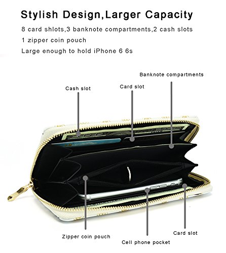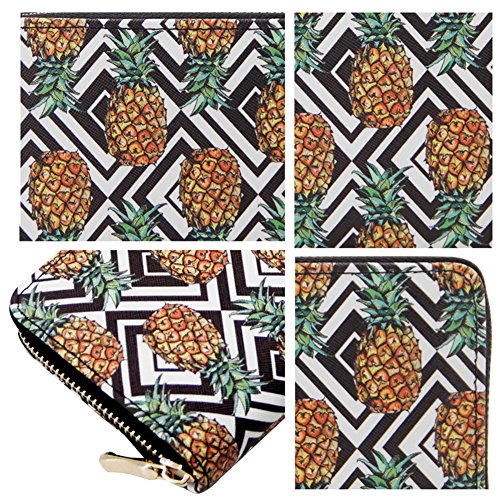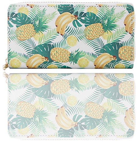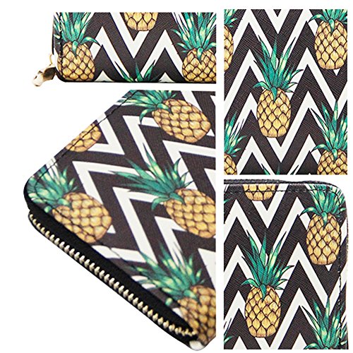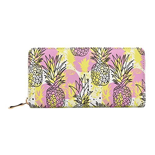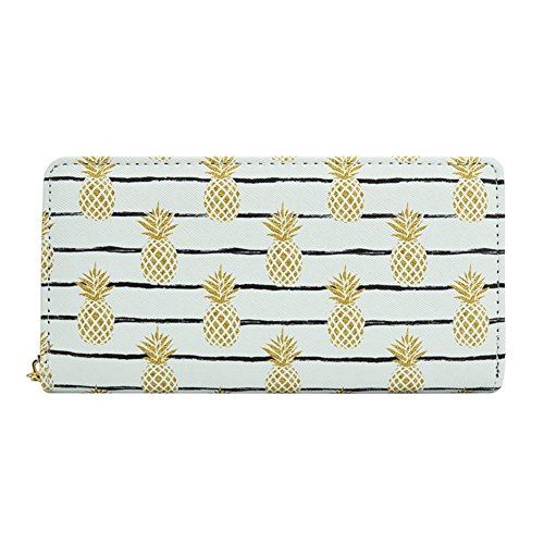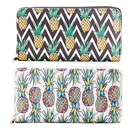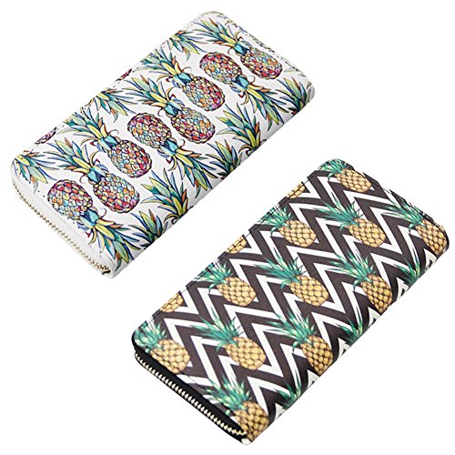 | Badiya Women Leather Long Zipper Wallet Pineapple Print Designer Clutch Purse Credit Card Holder |