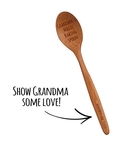 - QUALITY - Text and accents are laser printed to a wooden baking spoon to ensure the highest quality possible. Our spoons are sturdy but not heavy and will match any kitchen’s décor. Handle reads “I Love You Grandma” to let everyone know who baked that delicious pie.