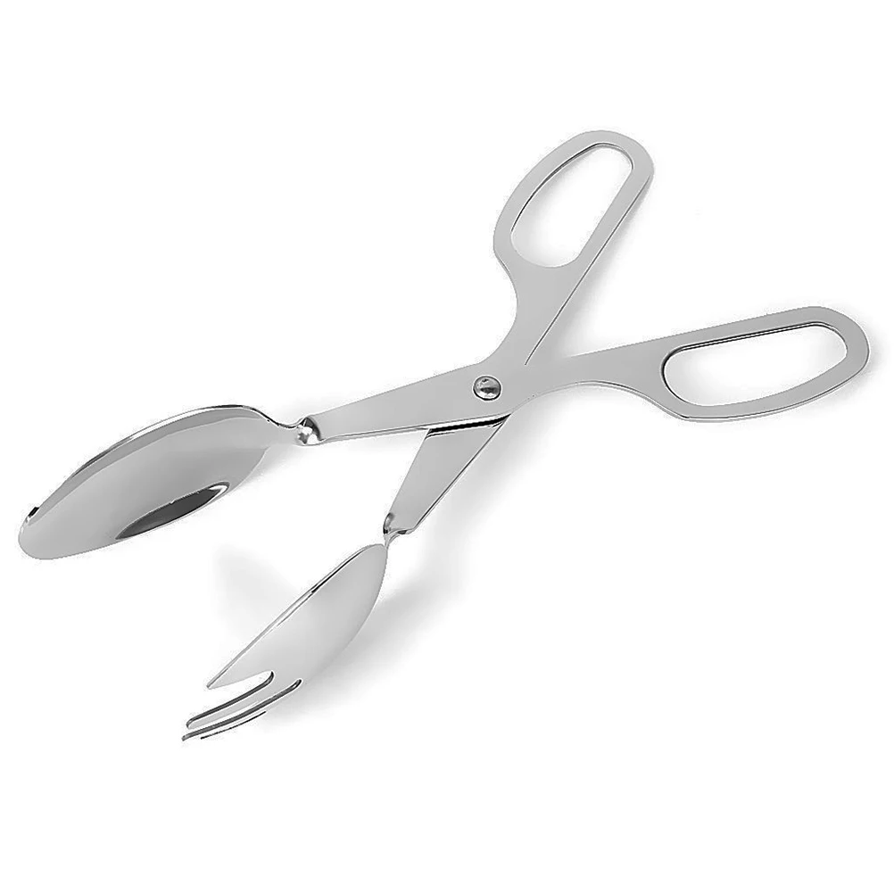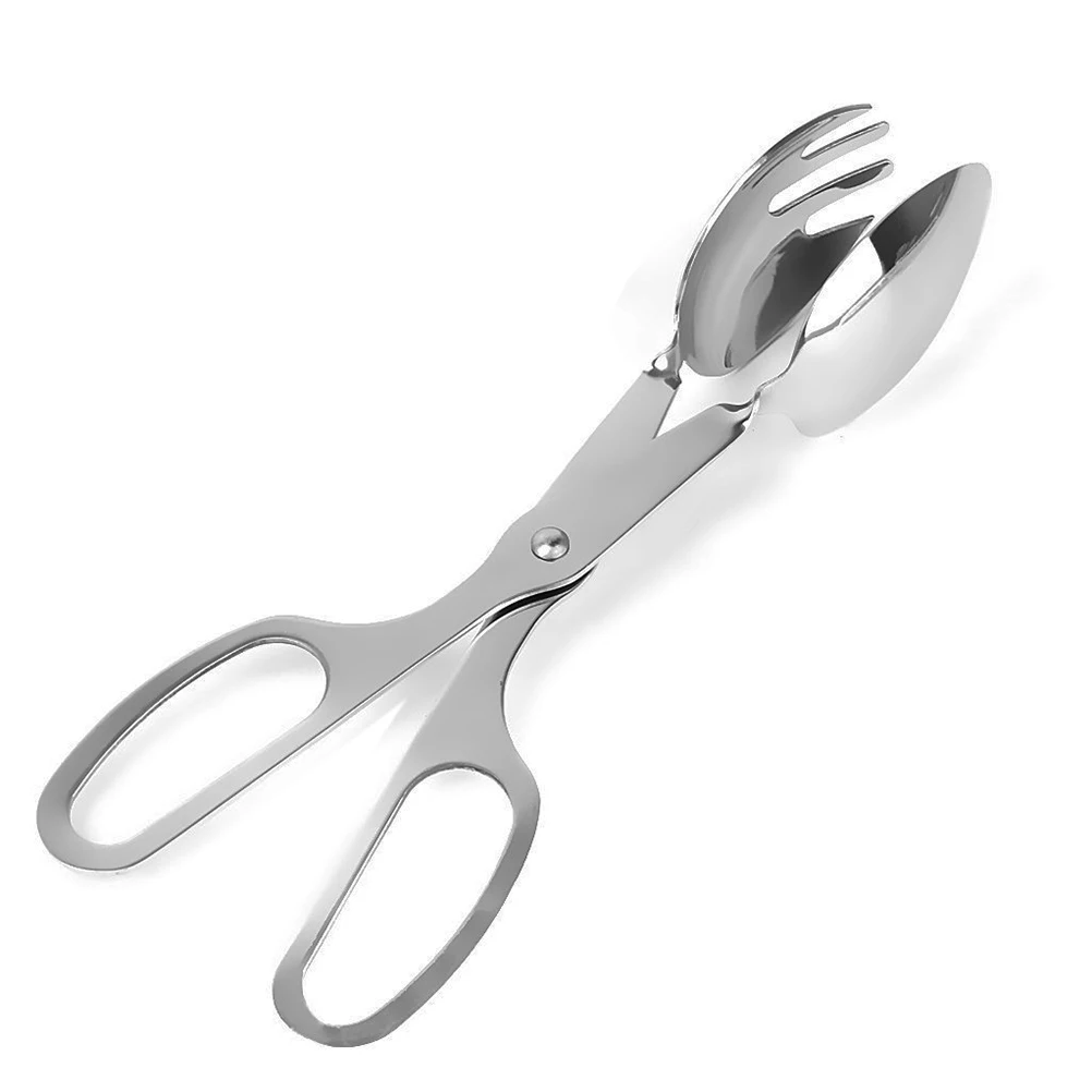 Hot Stainless Steel Salad Tongs Serving Spoon Fork BBQ Salad Kitchen Cooking Tools
