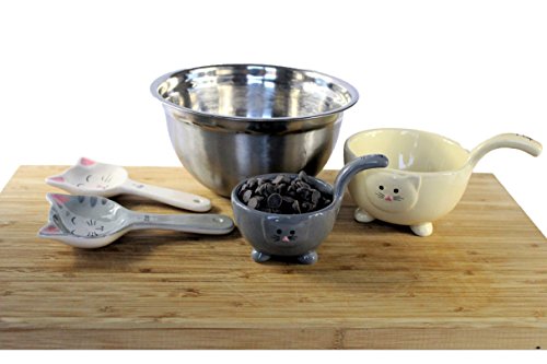 We figured you're going to measure different portions of ingredients to make the cookies and cakes just the way you want them, so we built it with that in mind. The set comes with four cups, each with different sizes that allows you to measure dry or ingredients easier and accurately. The premium ceramic measuring spoons will sweeping better than plastic or stainless steel spoons