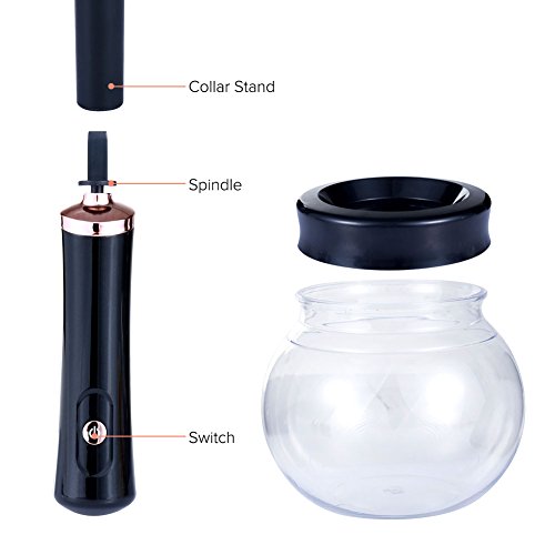 nj365 Makeup Brush Cleaner, 360 Degree Rotating Cleans and Dries All Makeup Brushes with 8 Brush Collars (Black)