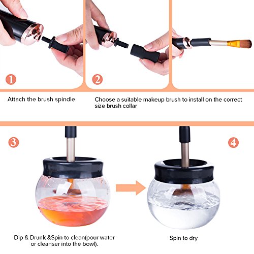 - Easy To Use - Three steps to clean : 1. Attach the brush to the spinner. 2. Pour some water and professional cleansing shampoo or soap into the bowl. 3. Dip the brush, spin to clean, raise the brush, spin to dry.