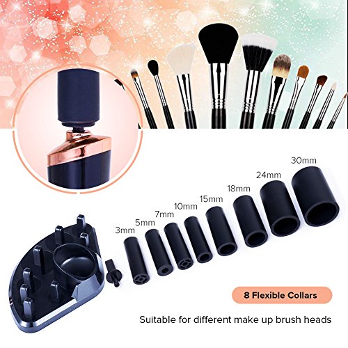 - Professional & Fast Clean and Dry: Auto clean and dry all size makeup brushes in 10 seconds, Prolonging the service life of the makeup brushes. 8 collars of different sizes fit for most makeup brushes.