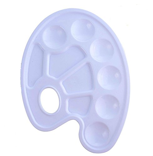 -. Feature : 100% brand new and high quality. / Material: Plastic; Size: 9"(L)* 7"(W) . / Very well designed with Six Round Wells, Four Rectangular Wells and a Thumb Hole. A Nice Partner for your painting. / Suitable for all water based media. Different size and design wells for mixing colors. Works for oils and especially for acrylic or watercolor paints. / Ideal for amateur painters, art classes / lessons, small paint projects, kid's painting projects / parties, and a great gift for friends / kids.