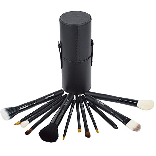 Inovaneo 12pcs Makeup Brush Set Face Cosmetic Brushes Kit Make up Tool with Cup Holder (Black)