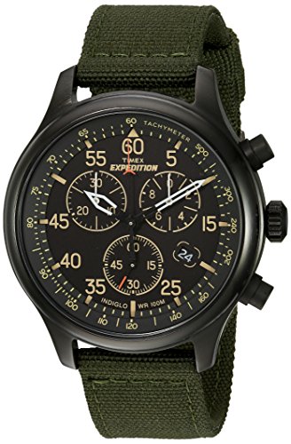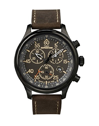 [Description] Classic Outdoor Design Chronograph Measures Up To 30 Minutes Genuine Leather Strap Quartz Movement with Analog Display Indiglo Light-Up Watch Dial Water-resistant to 100 m (330 ft): In general_ suitable for snorkeling_ as well as swimming_ but not diving