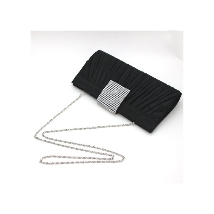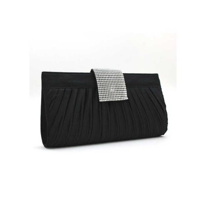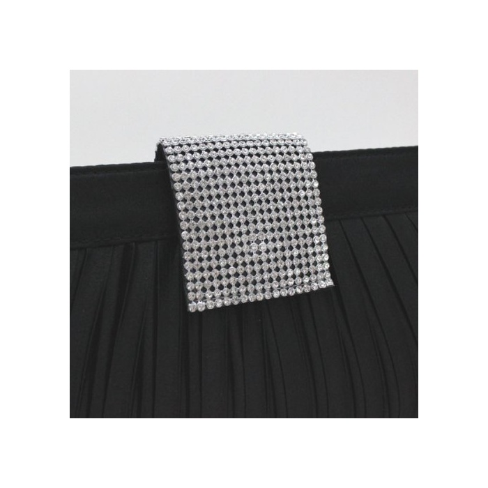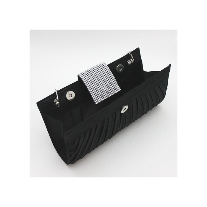 Umondstore 파티 백 라인 스톤 새틴 지르콘 2way 클러치 숄더백 플리츠 개더 블랙 검정【01245】