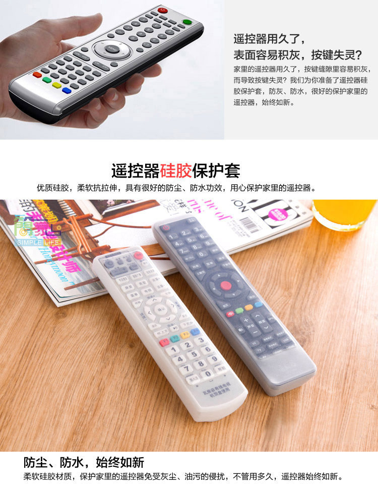 商品用途:优质硅胶,柔软抗拉伸,具有很好的防尘、防水功效,用心保护家里的遥控器。