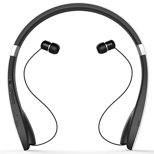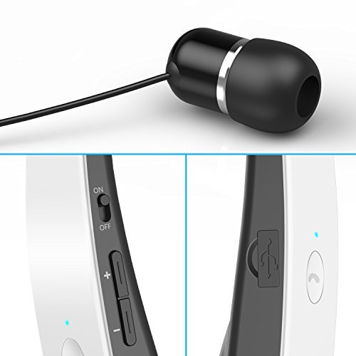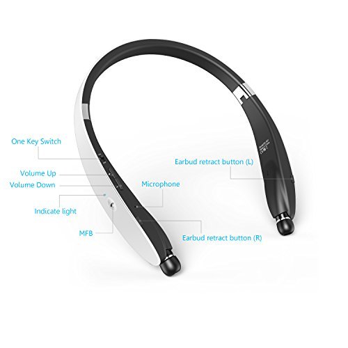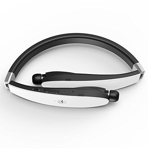 Sport headset, Dylan Bluetooth 4.1 Stereo Headset Wireless Neckband Design with Retractable Earbud for iPhone, Android, Other Bluetooth Enabled Devices-White