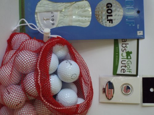 - Feature : 36 Gift Box Recycled Golf Balls in Mesh Bag / Glove White Left Medium/Large Golf Glove / Magnetic American Flag Golf Ball Marker/Hat Clip / Free Golf Tee's / Absolute Golf