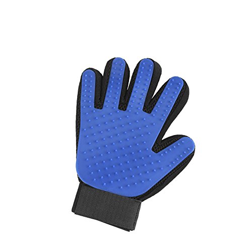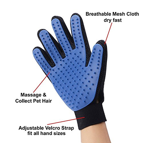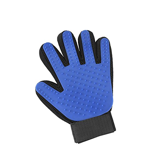 Our grooming glove is made of premium silicone and fabric material, the glove features 180 soft silicone grooming tips and its 5 finger design allow you to easily reach all the spots that dead hair hides (chest, tails, behind their legs, around the face,etc). Our exclusive glove is perfect for all coat types, long, or short hair, wet or dry.