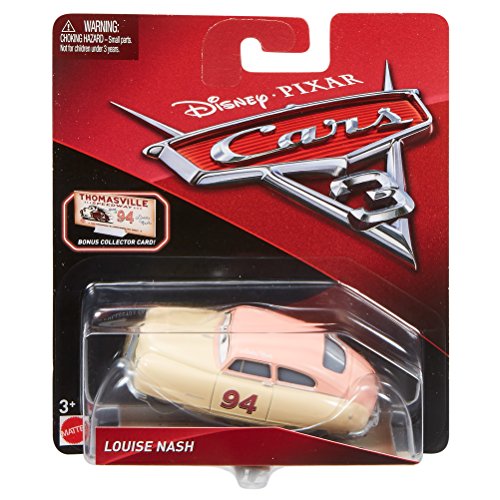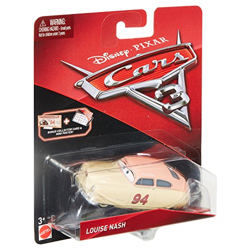 -. Binding : Toy -. Brand : Disney -. Color : Multicolor -. EAN : 0887961554489 -. Feature : New 1:55 scale character vehicles from Disney/Pixar Cars 3! / Authentic true to movie decos and details that highlight each personality / Wide variety to create or enhance your collection. Each die-cast sold separately, subject to availability / Recreate Cars action and laughs with die-casts in other assortments from all three movies! Each vehicle sold separately, subject to availability / Collect them all! -. IsAdultProduct : 0 -. Label : Mattel -. Manufacturer : Mattel -. Model : FLB54 -. MPN : FLB54 -. NumberOfItems : 1 -. PackageQuantity : 1 -. PartNumber : FLB54 -. ProductGroup : Toy -. ProductTypeName : TOYS_AND_GAMES -. Publisher : Mattel -. ReleaseDate : 2018-10-01 -. Studio : Mattel -. Title : Disney Cars Louise Barnstormer Nash Vehicle, Multicolor -. UPC : 887961554489 -. Warranty : 1 Year Warranty Against Manufacturer Defects
