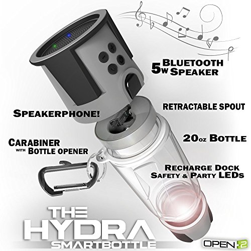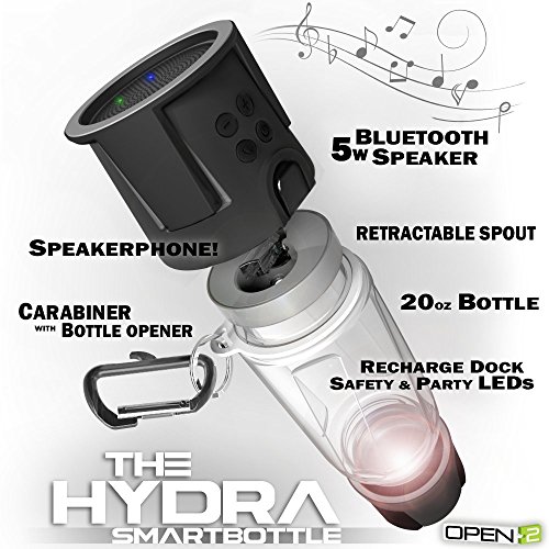 -. Title : HYDRA SmartBottle - BPA-FREE Water Bottle, Bluetooth Speaker with Speakerphone, 4000 mAh Power Bank Charger, Multicolor LED Light - Free Android and iPhone App