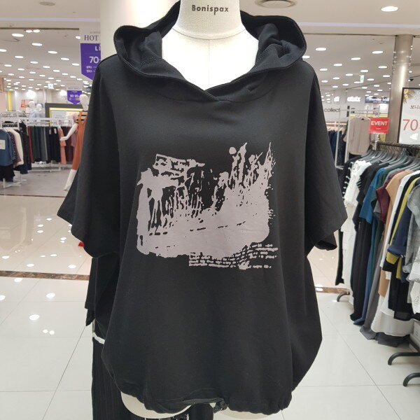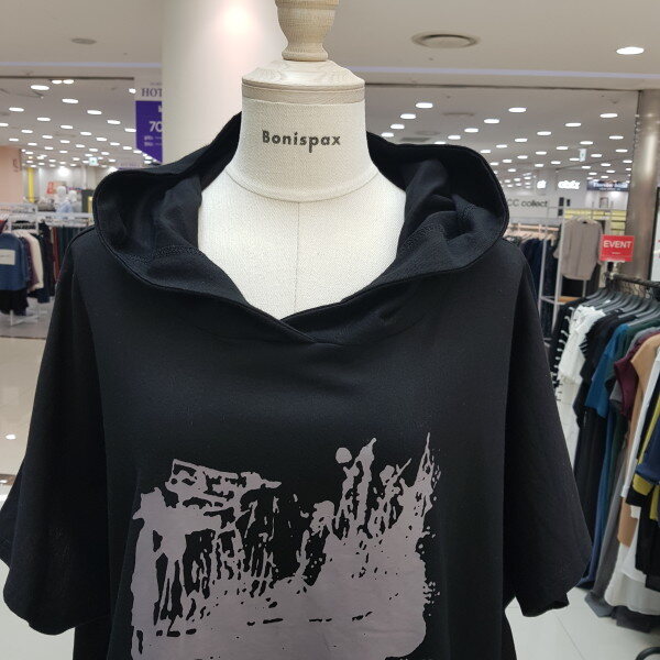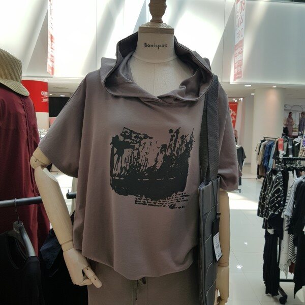 후드가달린 루즈핏스탈의 멋스런 티셔츠입니다.밑단에 스트링이 있어 조여 입으면 더욱더 귀엽게 입을수 있답니다.