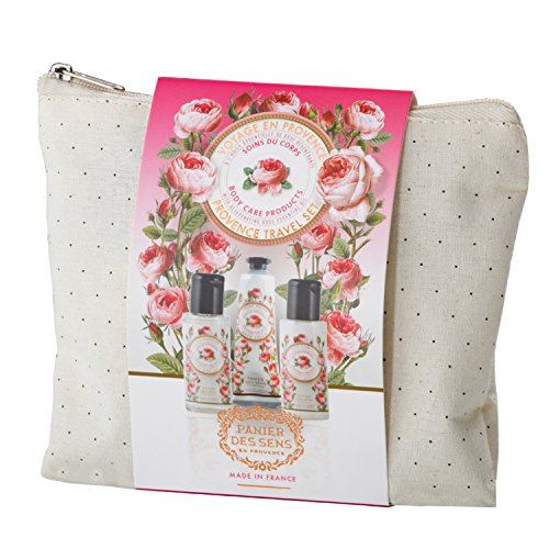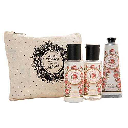 - Three item travel gift set that includes one 1.7-ounce Panier Des Sens Shower Gel, one 1.7 ounce Body Lotion and one 1-ounce Hand Cream with natural essential oils from Provence in "Rose" scent.