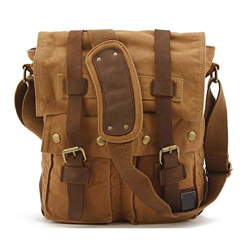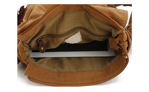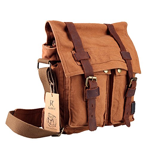 - Title : Kattee Mens Ladies Unisex Retro Canvas School Travel Messenger Bag with Leather Strips