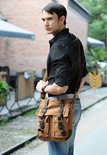 - Feature : 100% brand new & High quanlity / Material: canvas and Cow Leather / Color: Khaki / Item weight: 0.86kg / Gender: Men and Women