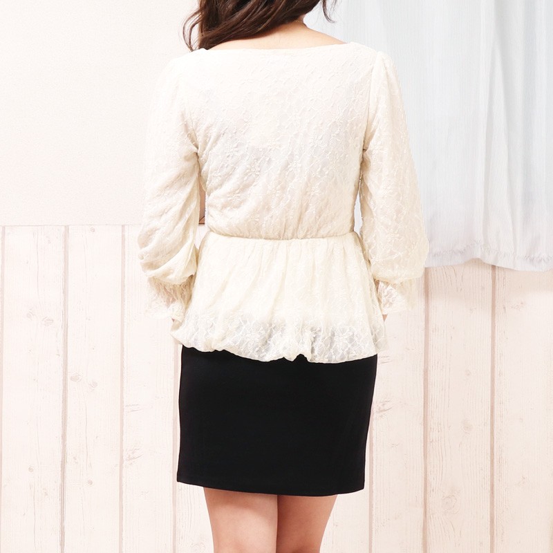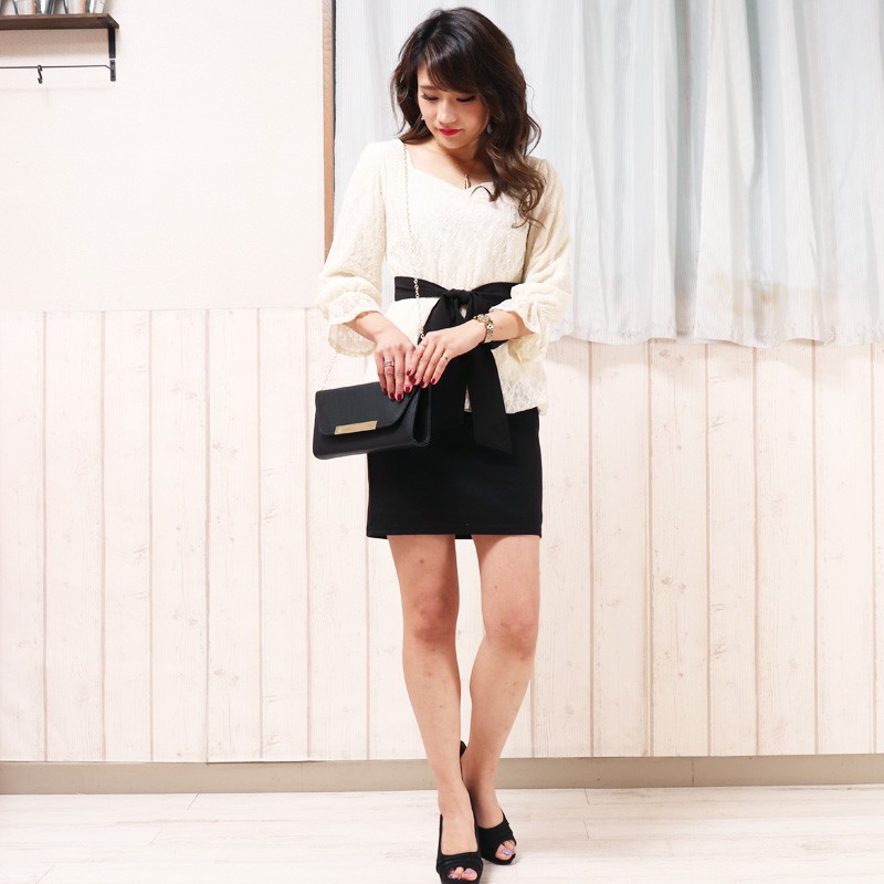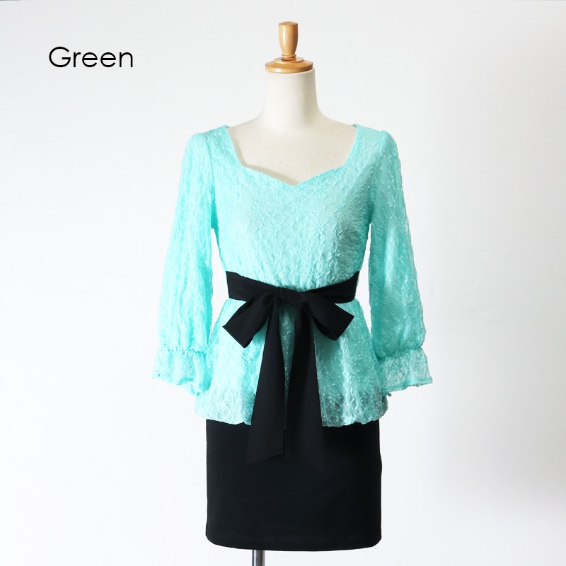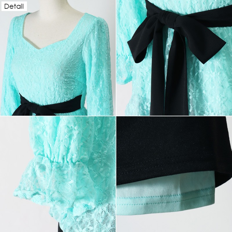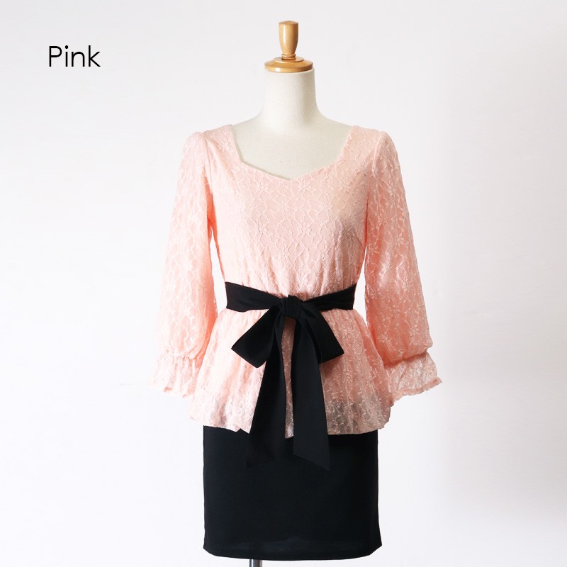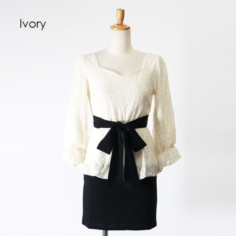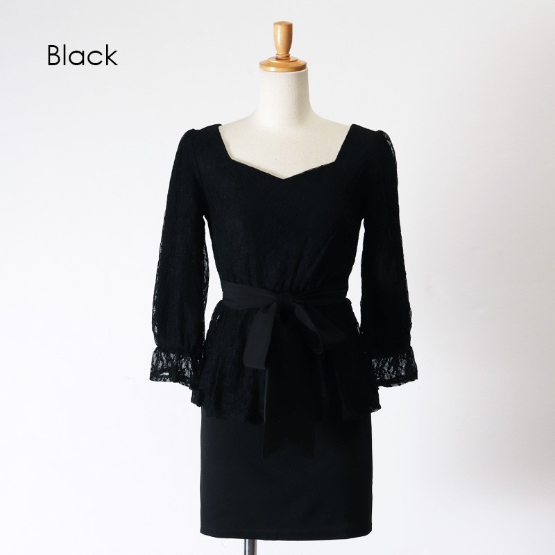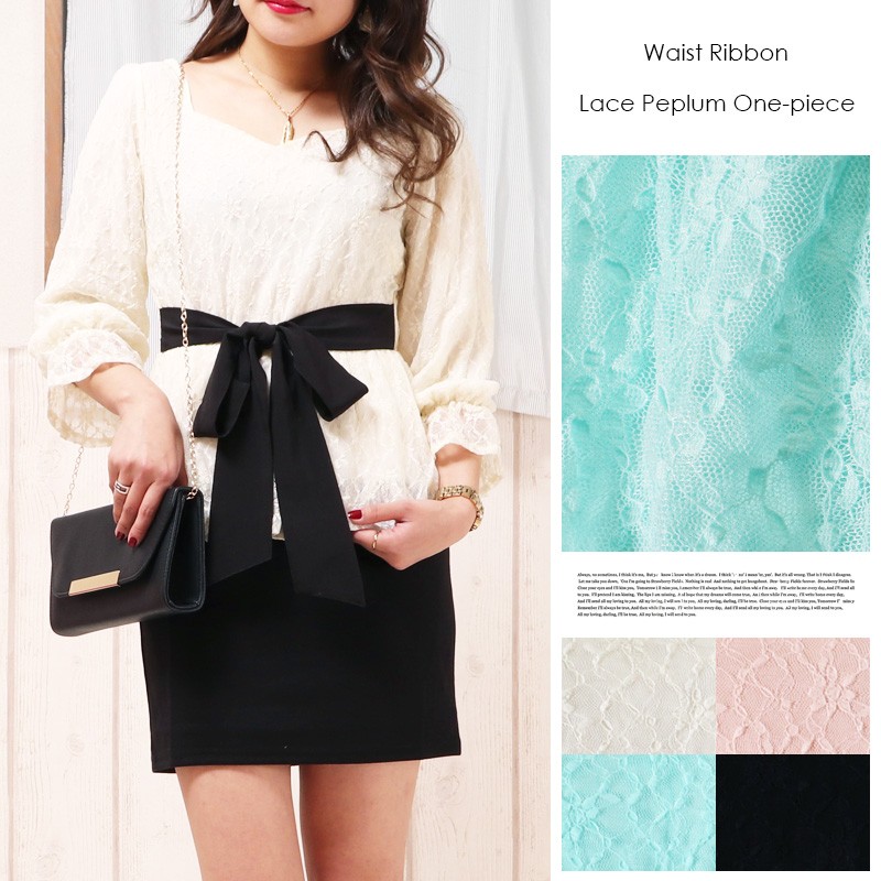 ウエストリボンレースペプラムドッキングワンピース