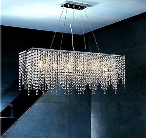 7PM L32" x W8" x H16" Modern Linear Rectangular Island Dining Room Crystal Chandelier Lighting Fixture Category: Chandelier