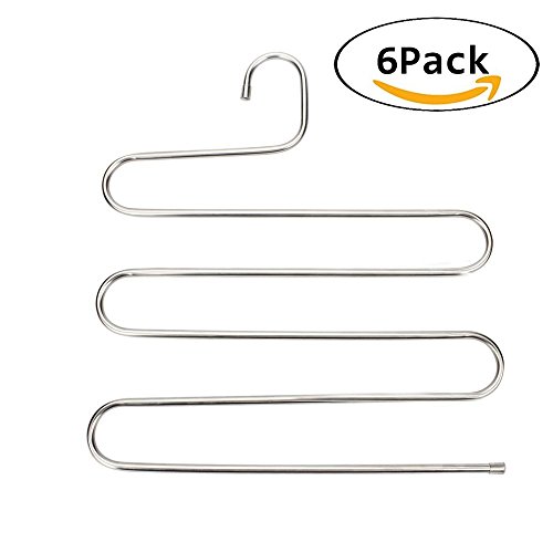 -. Feature : CLOSET STORAGE SOLUTION: Our 5 tier hanger's slim design, durable stainless steel bars and multi-functional use are the ultimate closet storage solution for any home. Save space and keep cramped closets neat and tidy in your apartment, tiny home, RV or house. / VERSATILE USE THROUGHOUT THE HOME: With 6 hangers to use in each pack throughout your home, the organization possibilities are endless. Store fabric in the craft room, hang towels in the bathroom, keep trousers flat and wrinkle free or organize scarves in your winter wardrobe. No matter where you choose to use them, these multi-talented hangers will bring elegant organization to any room in your home. / DURABLE STAINLESS STEEL: Each hanger is made from premium stainless steel to let you enjoy innovative organization for years to come. Durable and strong, this rustproof metal won't bend under the weight of heavier items and can hold up to 10 pounds effortlessly! / PROTECT DELICATE CLOTHING: With a smooth plastic cap on each end of the hanger and a sleek steel surface, you can keep even your most delicate clothing, tear and snag free! / UNIQUE, SLIM S-SHAPE DESIGN: The modern 5-in-1 design is a versatile organization solution for any closet in your home. Made from one piece of super strong stainless steel so you can enjoy long-lasting organization throughout your home.