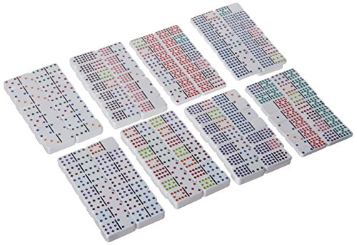 Professional Size Double 18 White Domino Tiles with Multicolored Dots