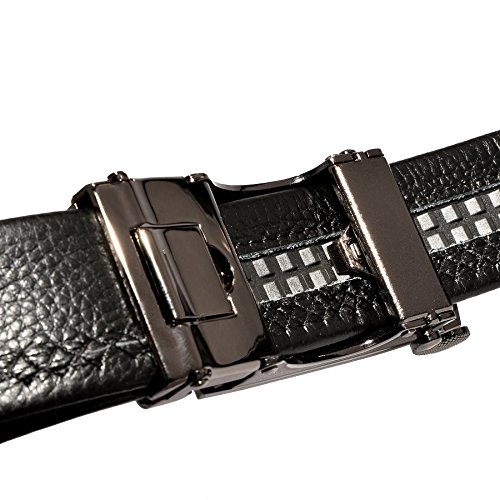 ✔Highly Flexible: no more holes in belt with easy removable buckle allows you to custom your ideal size. The ratchet system has 32-adjustable positions that allows for a perfect fit every time you put on your belt!