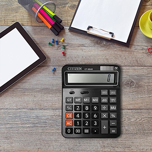 Everplus Black 14D Electronic Desktop Calculator with 14 Digit Large Display, Solar Battery LCD Display Office Calculator