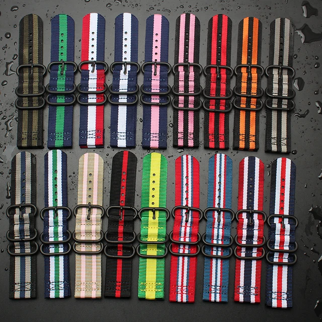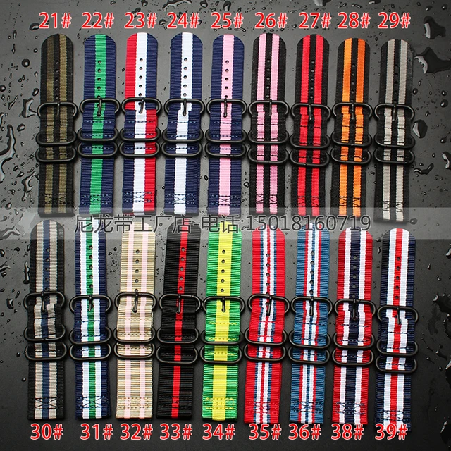 | [해외] 뜨거운 판매 군사 육군 나일론 직물 칸바 손목 시계 밴드 스트랩 18 미리메터 20 미리메터 22 미리메터 24 미리메터 다채로운 방수 스트랩 블랙 버클 |
