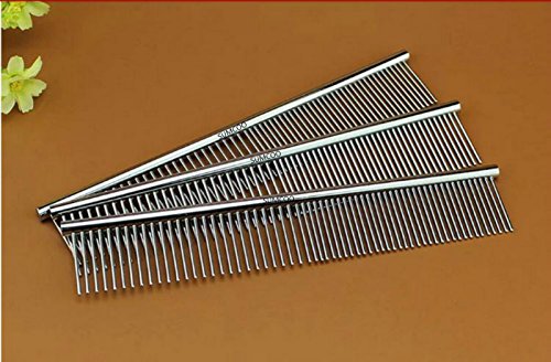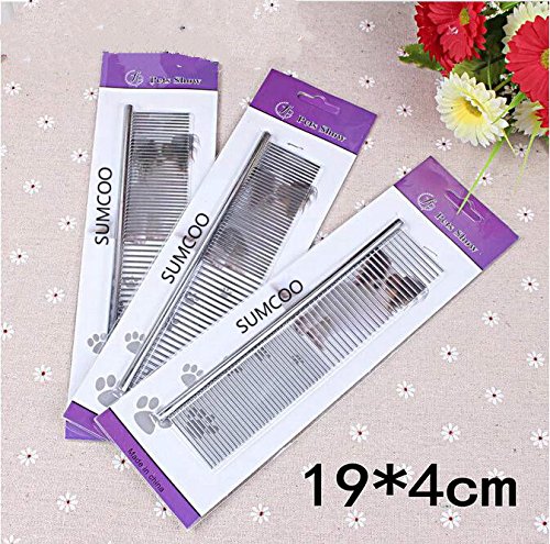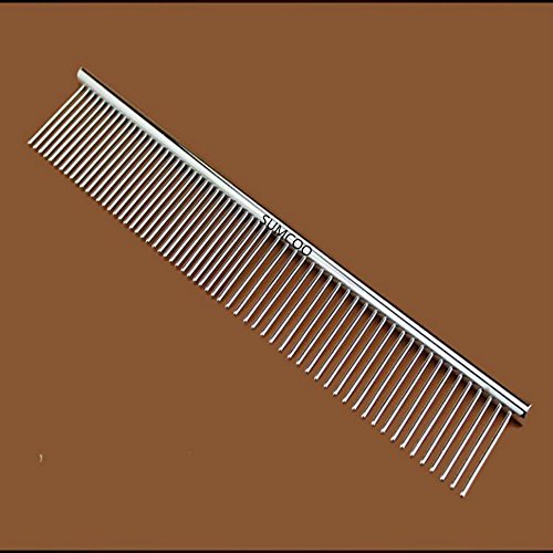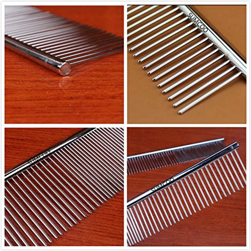 SUMCOO Stainless Steel Pet Dog & Cat Shedding Comb and Grooming Comb with Different Spaced Rounded Teeth,Wide Trimmer Comb.