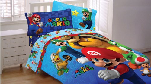 - Feature : Super Mario Fresh Look twin-full comforter, full flat sheet, fitted sheet, and two pillowcases. / Genuine licensed merchandise. / Machine washable. / Made of high-quality polyester jersey. / Comforter is reversible! Get two looks in one!