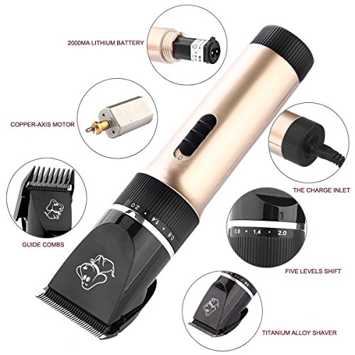Cordless and Rechargeable: Light weight and cordless design. The pet grooming kit is equipped with a rechargeable battery, you can no longer be bothered by the trouble of replacing batteries or boring wires.