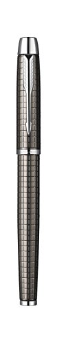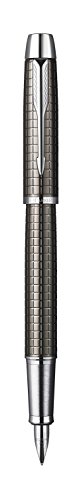 -. Title : Parker IM Premium: Gun Metal Chisseled Fountain-Pen, Chrome Trims. Steel Fine Nib.