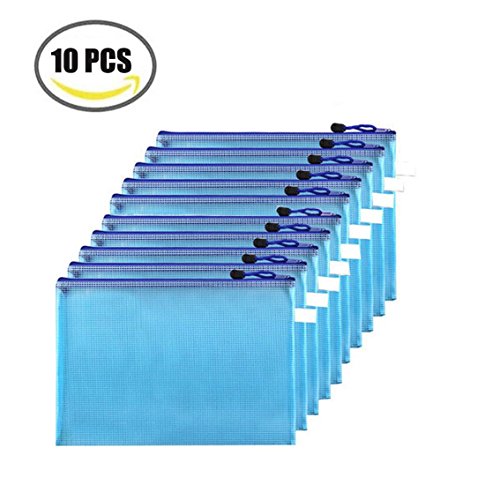 10 Pieces A4 Size Mesh Document Bag Zipper File Bag Document Folders for Business Document Organizer and Office Stationery Storage (Blue)